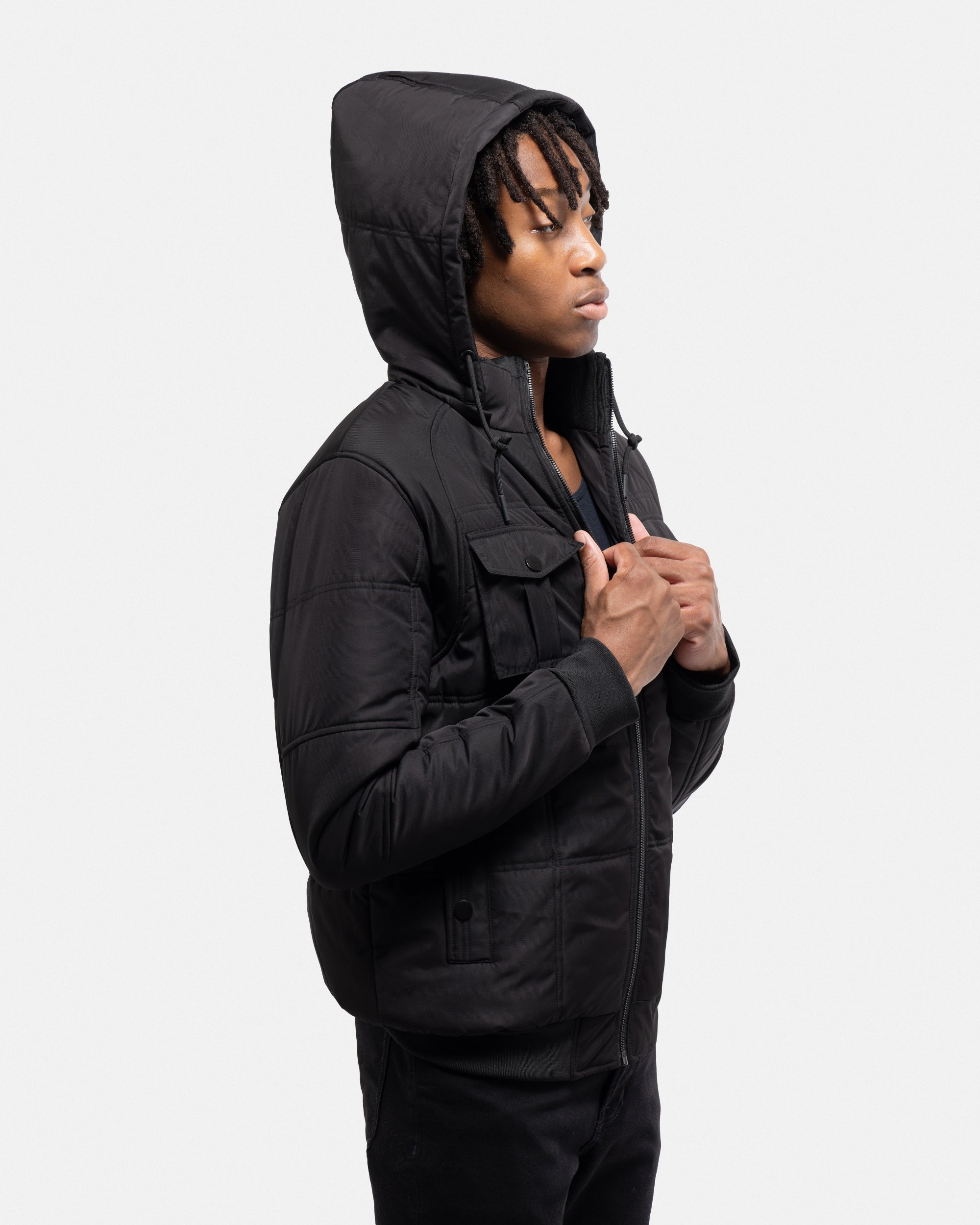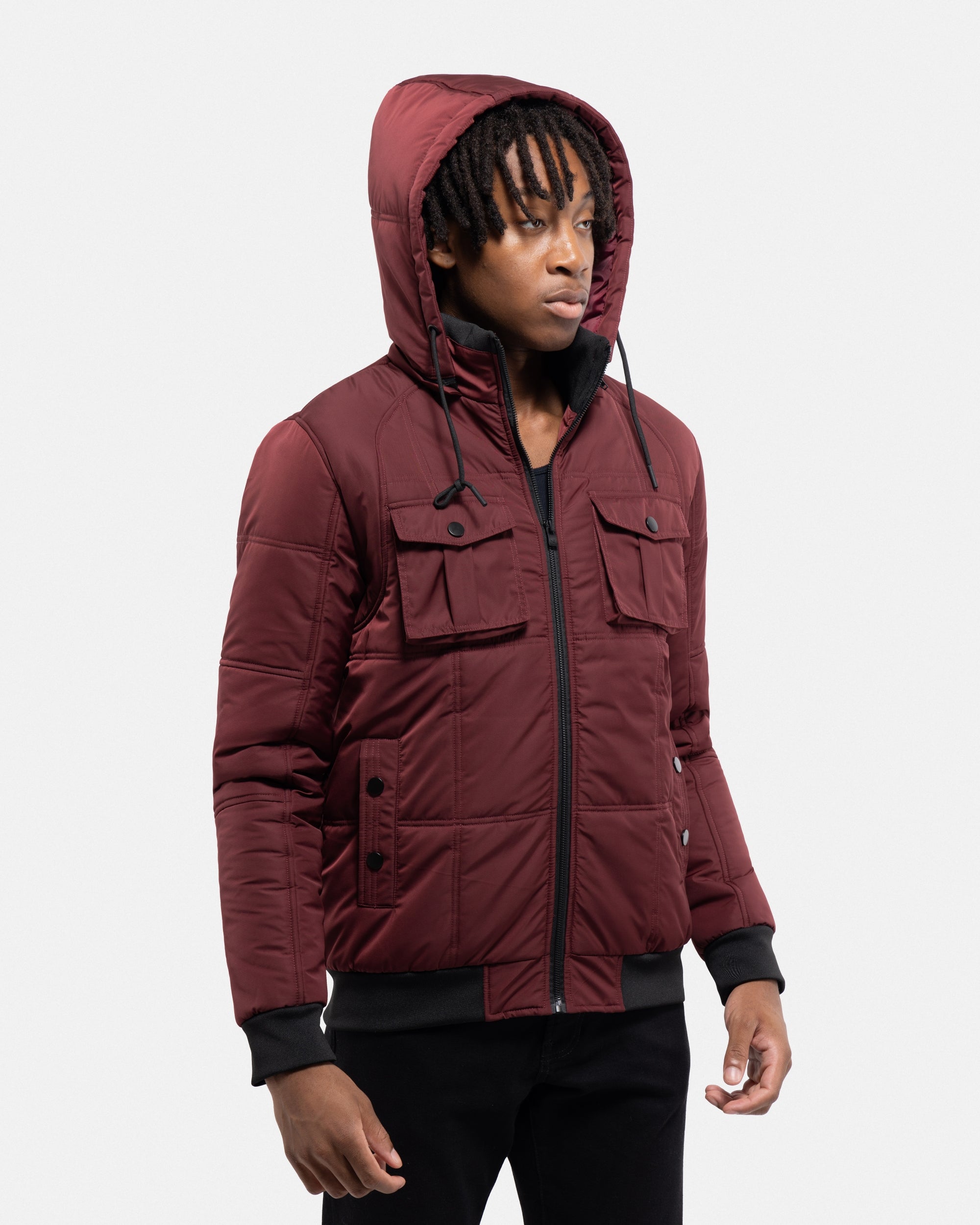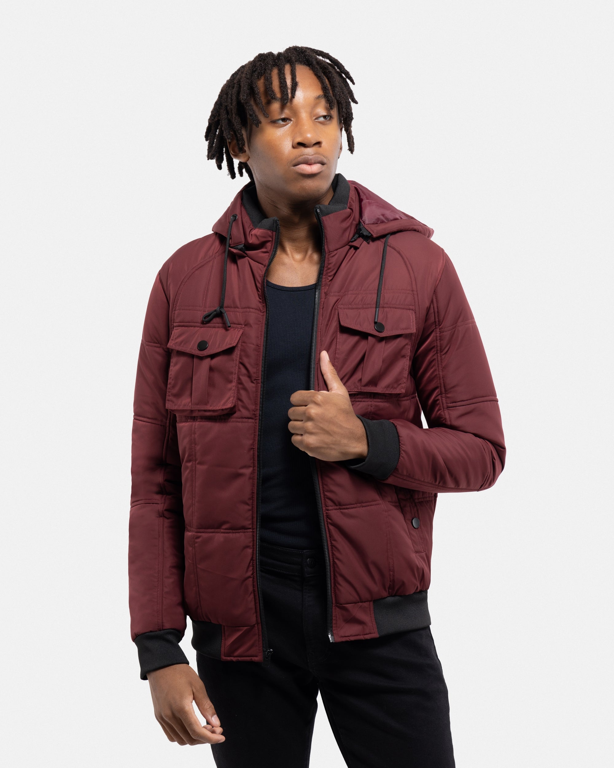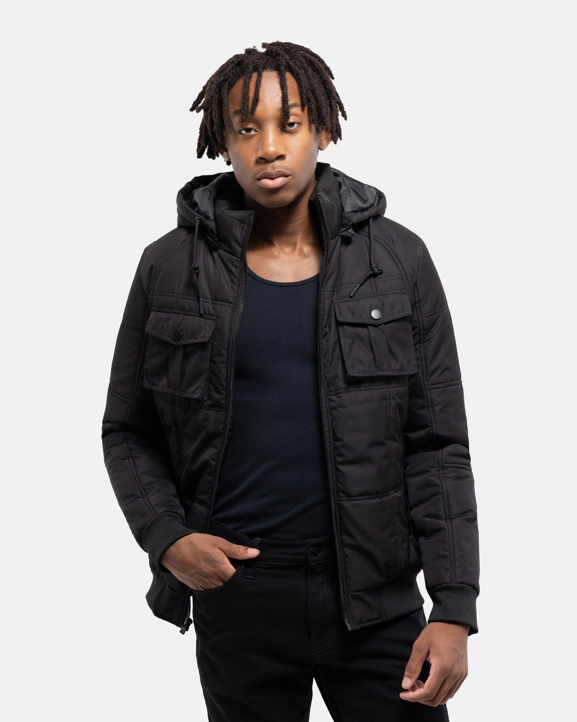 X RAY Mens Hooded Puffer Jacket With Patch Chest Pockets