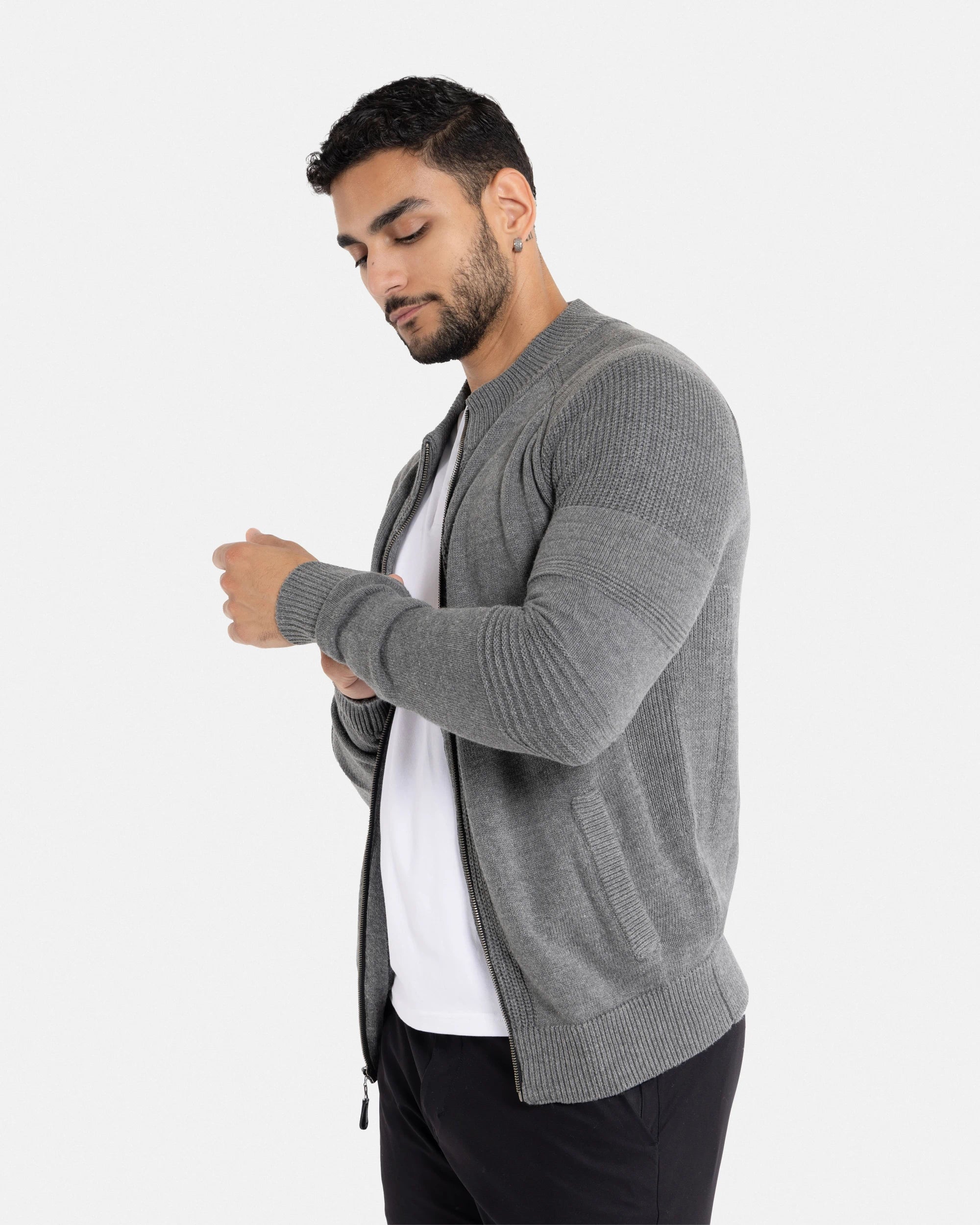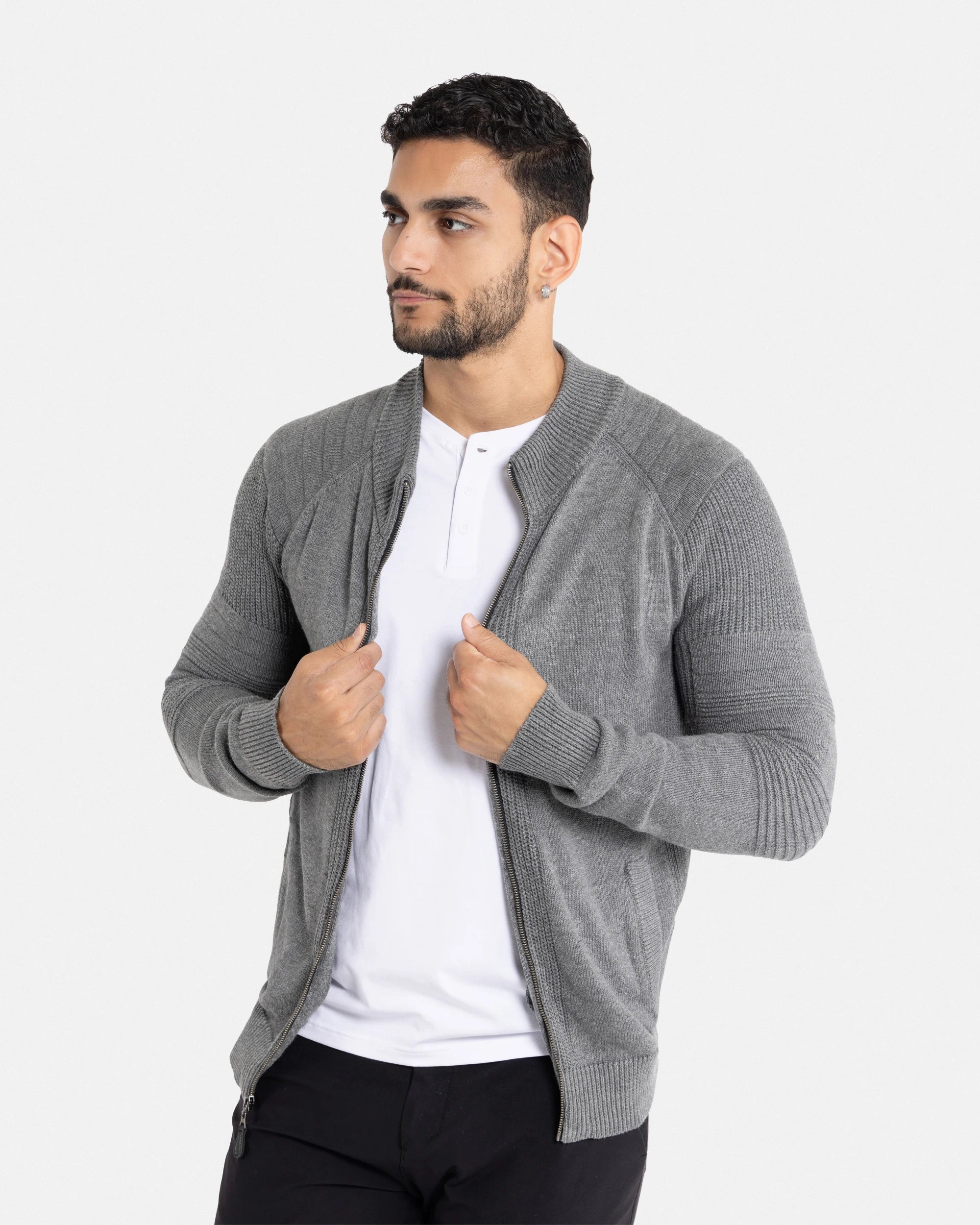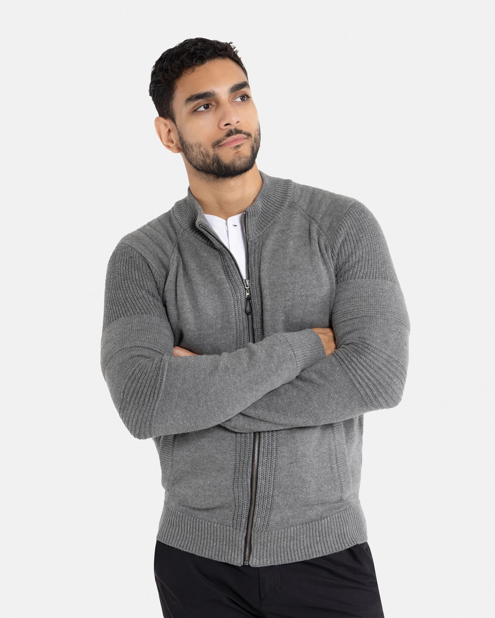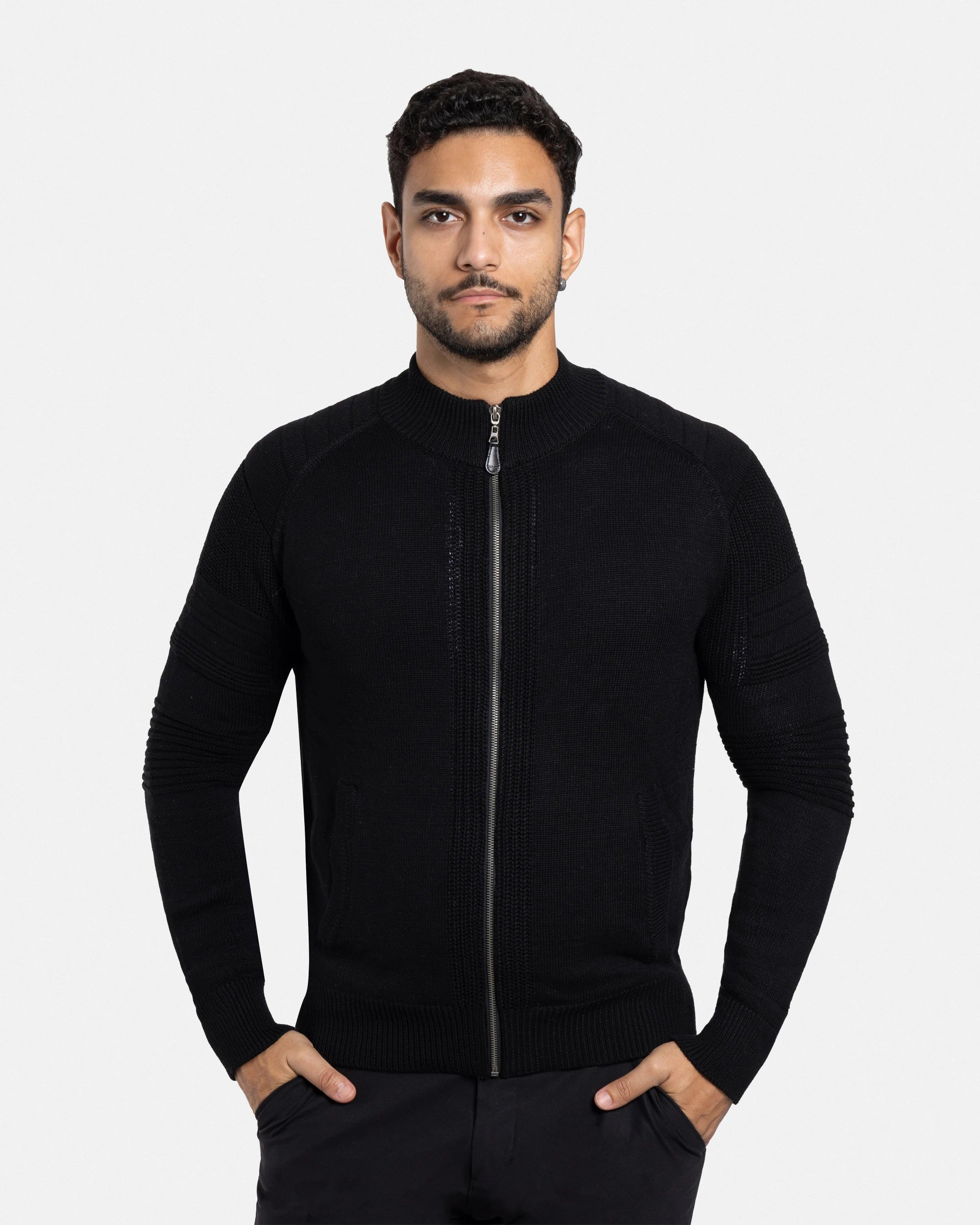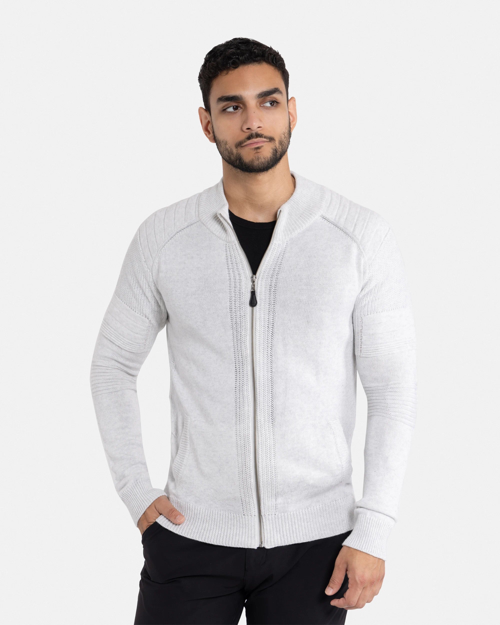 - STYLE: With A Full Zip Closure, Textured Striping on Sleeves & Chest, Classic Style Easy To Pair Up Dressy Or Casual.Zip-Up Design With Long Sleeves. Ribbing On Cuffs, Waistline & Neck.