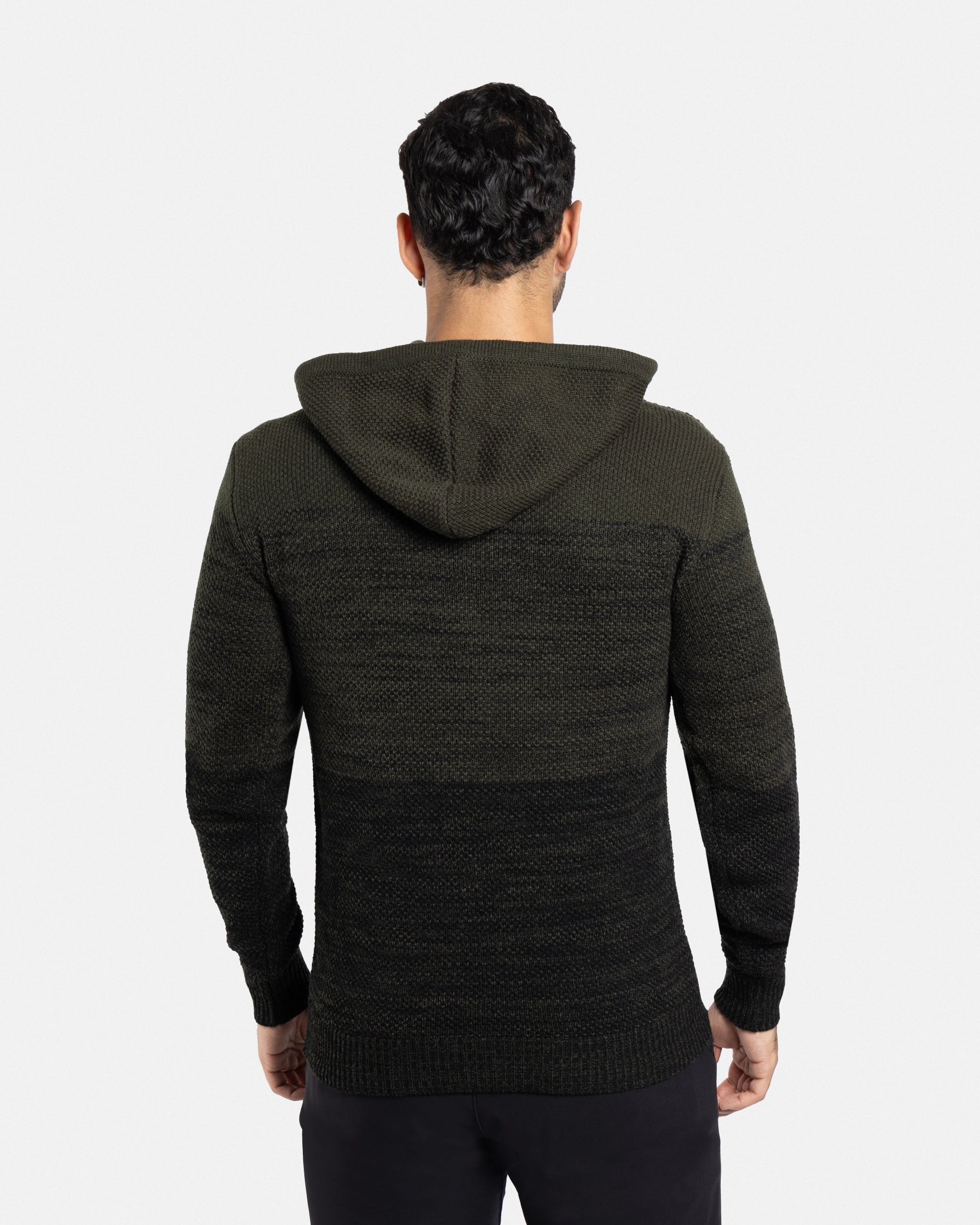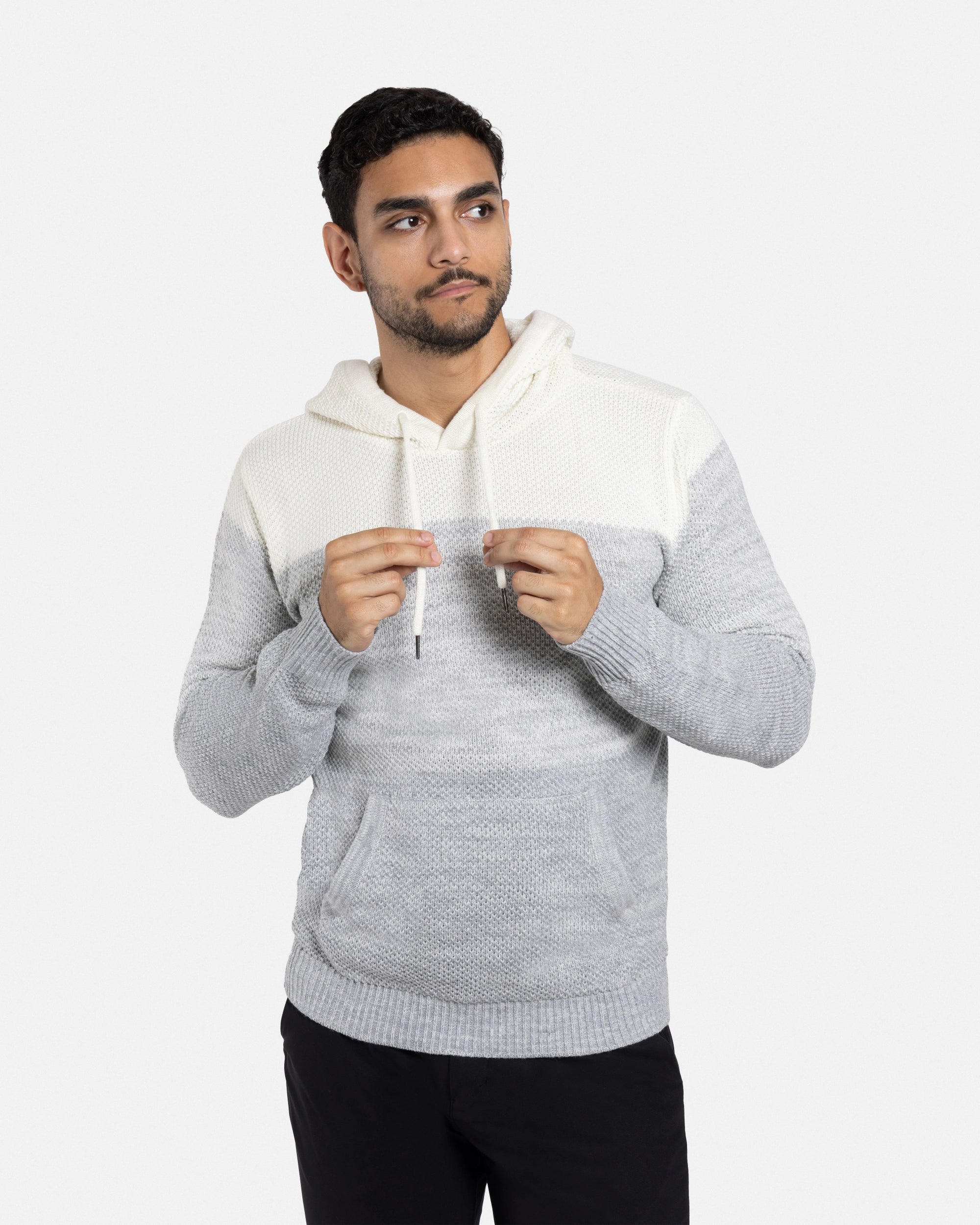 #XMW-39066 Colorblock Knitted Pullover Hooded Sweater
