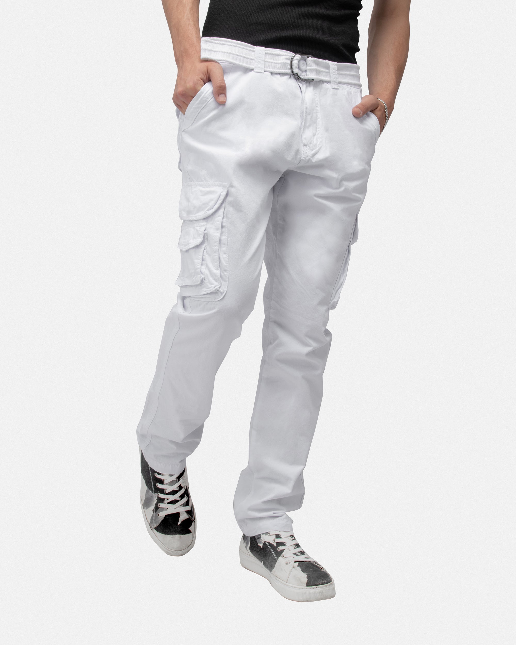 X RAY Men's Belted Classic Fit Cotton Cargo Pants