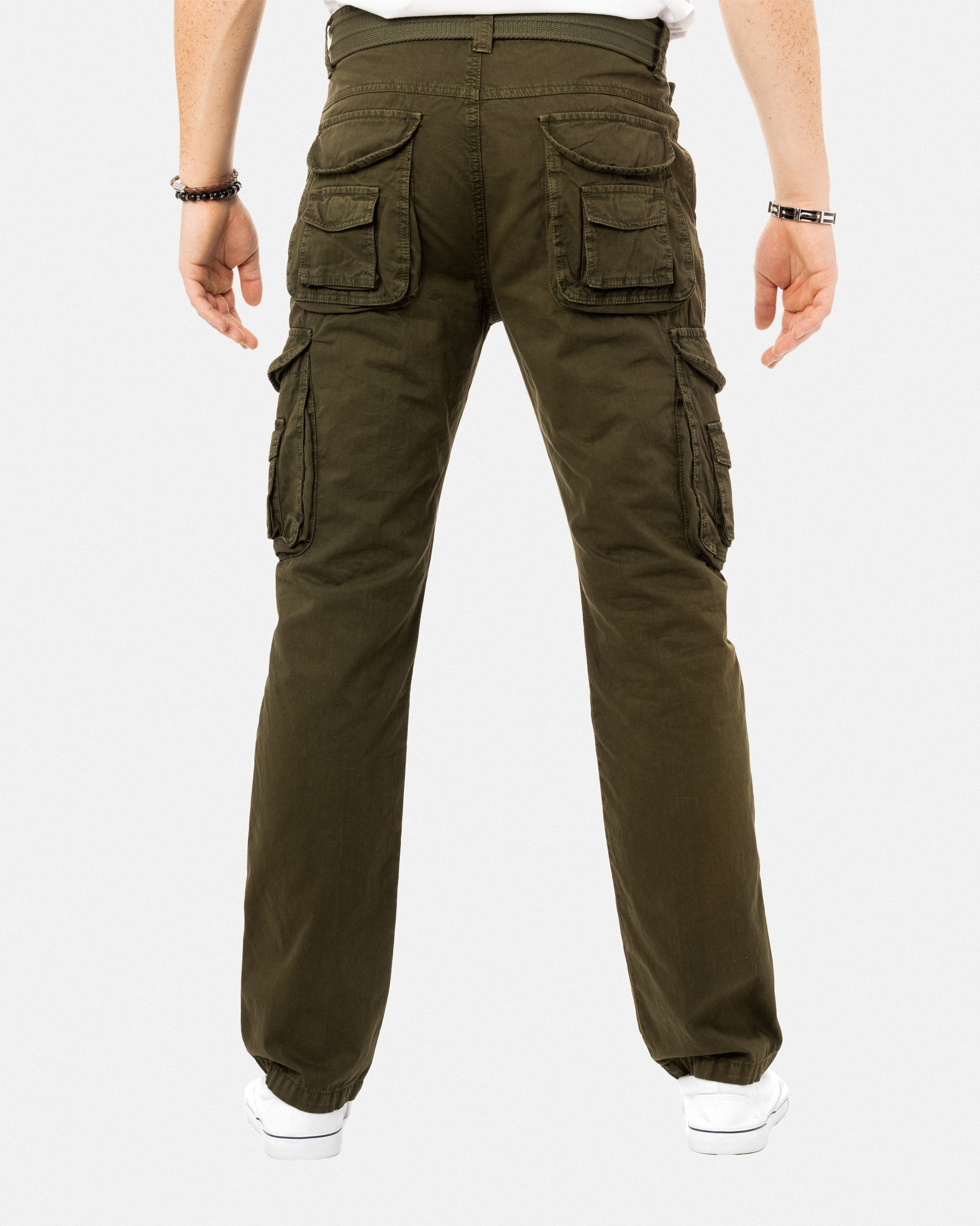 DURABILITY: Made of 100% Cotton Material, Features Double Stitching in High Strain Areas, High Quality Button & Zip Fly ClosureCOMFORT: Rests at Natural Waistline for Maximum Comfort, Cotton Fabric Will Keep You Cool & Comfortable All Day. Modern Stylish Atletic Fit Gives you a Fitted Look Yet Support All Movements. May feel a bit slim.CONVENIENCE: Features 2 Side Slant Pockets, 2 Double Cargo Hidden Snap Closure Flap Pockets & 2 Double Back Snap Closure Flap Pockets for Quick Access and More StorageMachine washable : Simply toss into the washing machine for cleaning, soft stretchy material makes them easy to get on and off.DESIGN : Deep Pockets Design To Carry More Items like Small Tools or Phone. Double D Ring Belt Included. Great gift idea for the holidays.