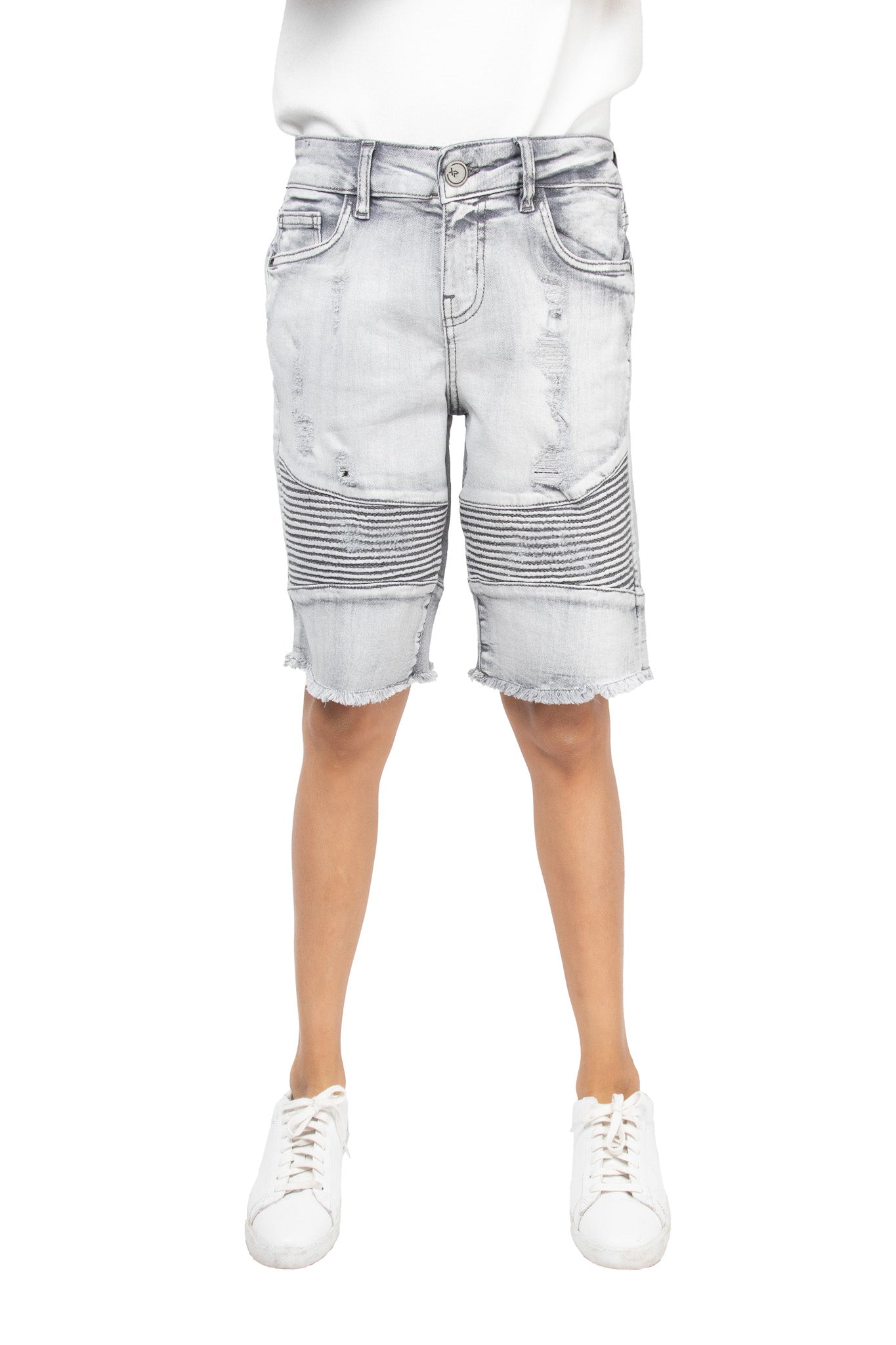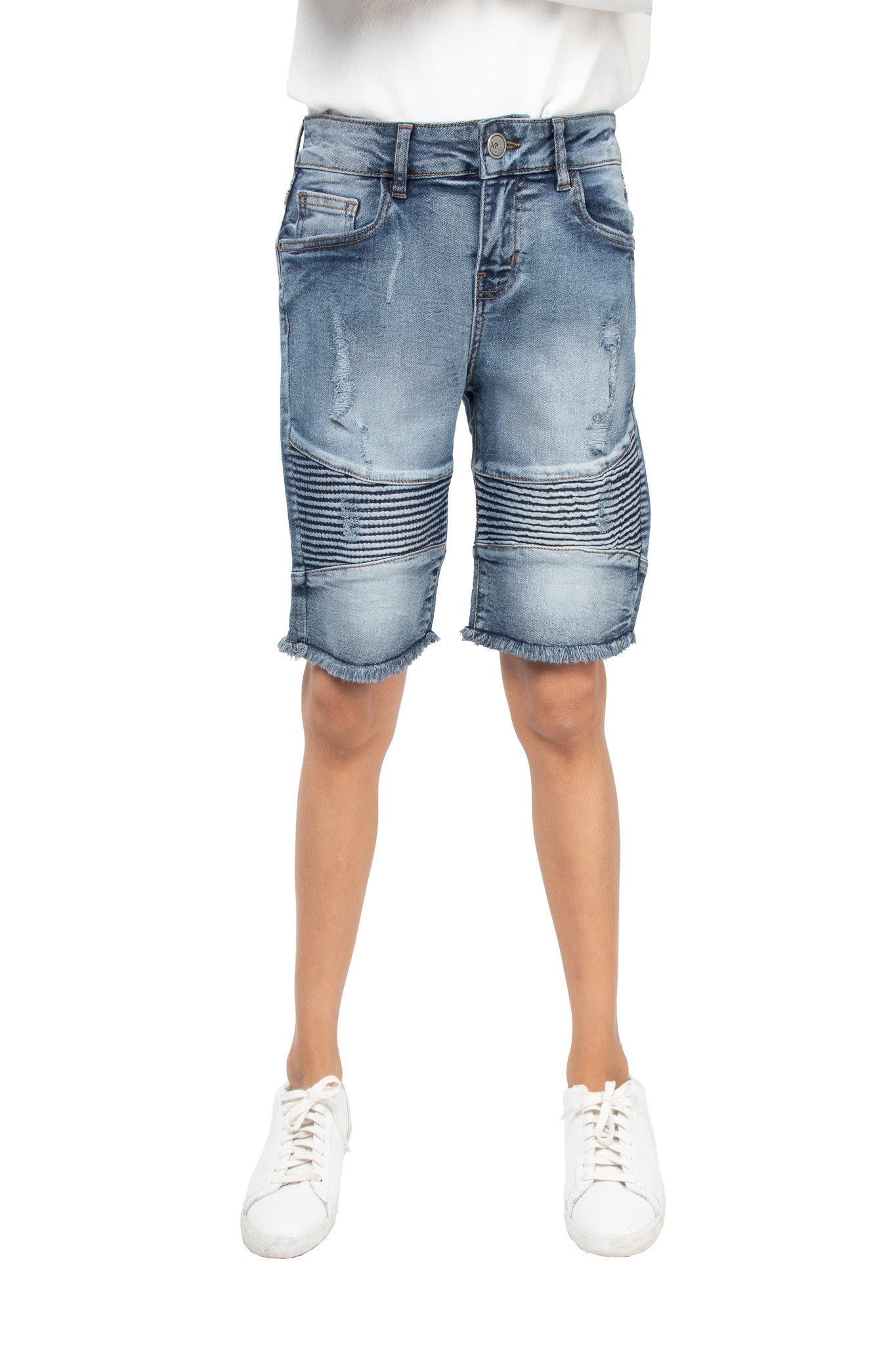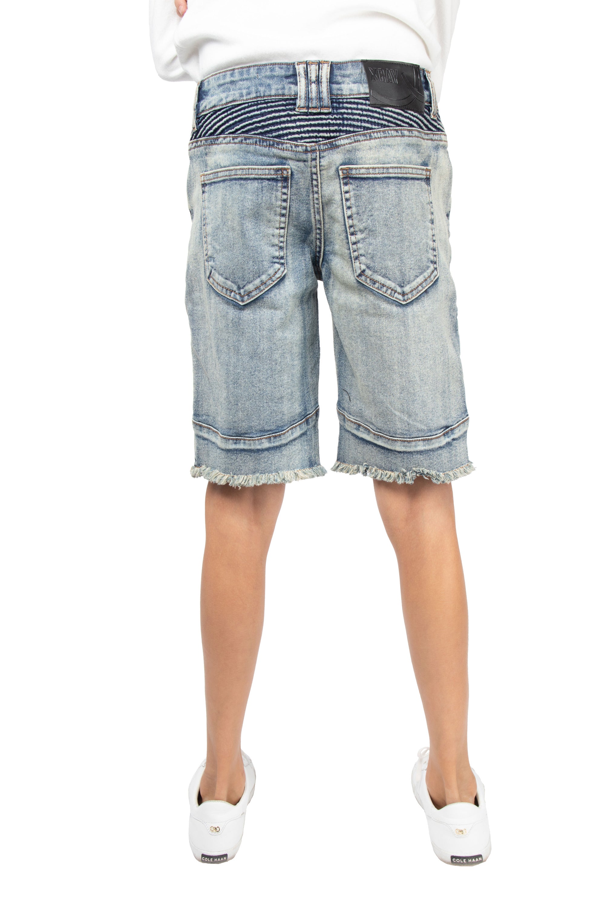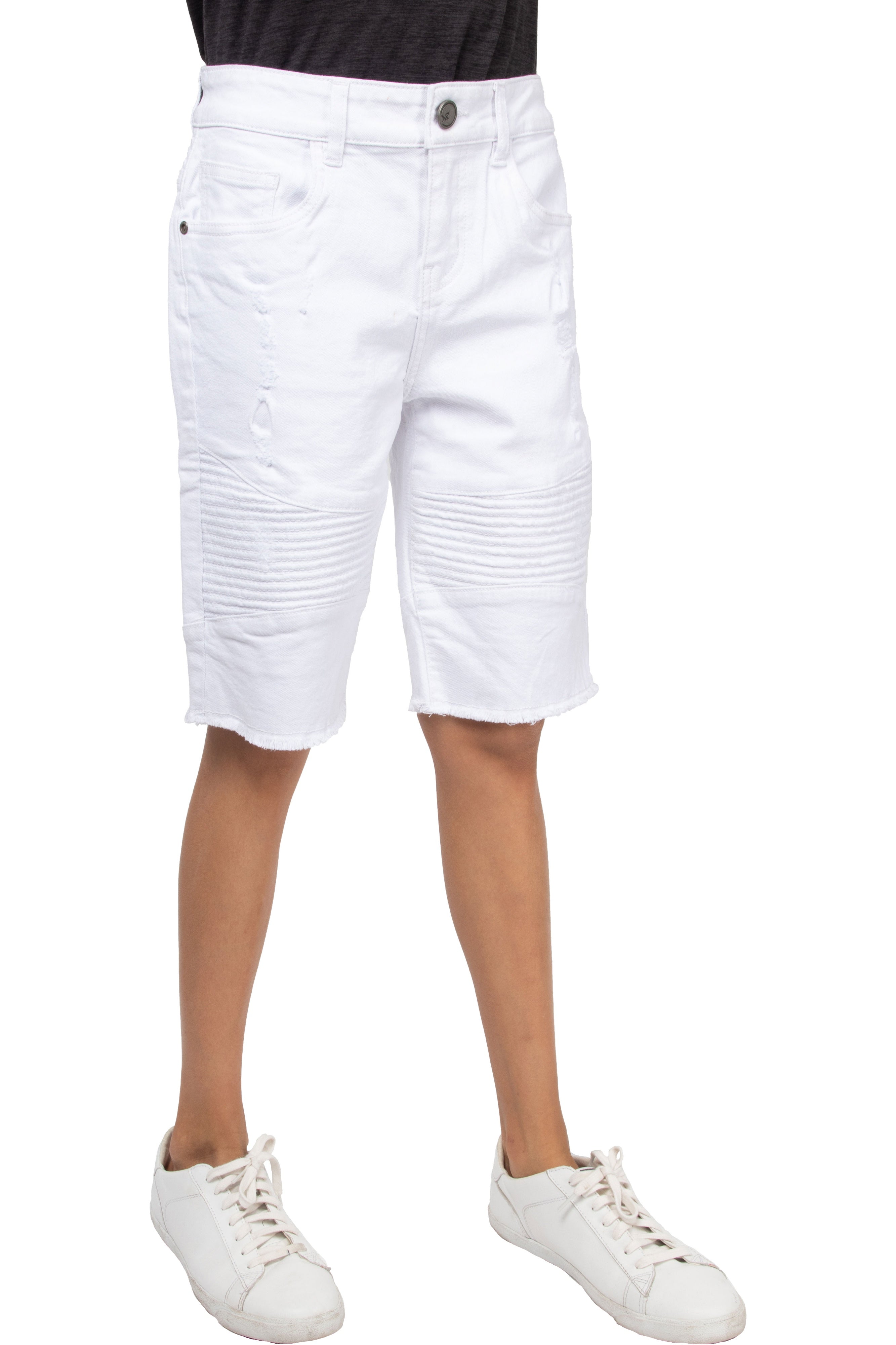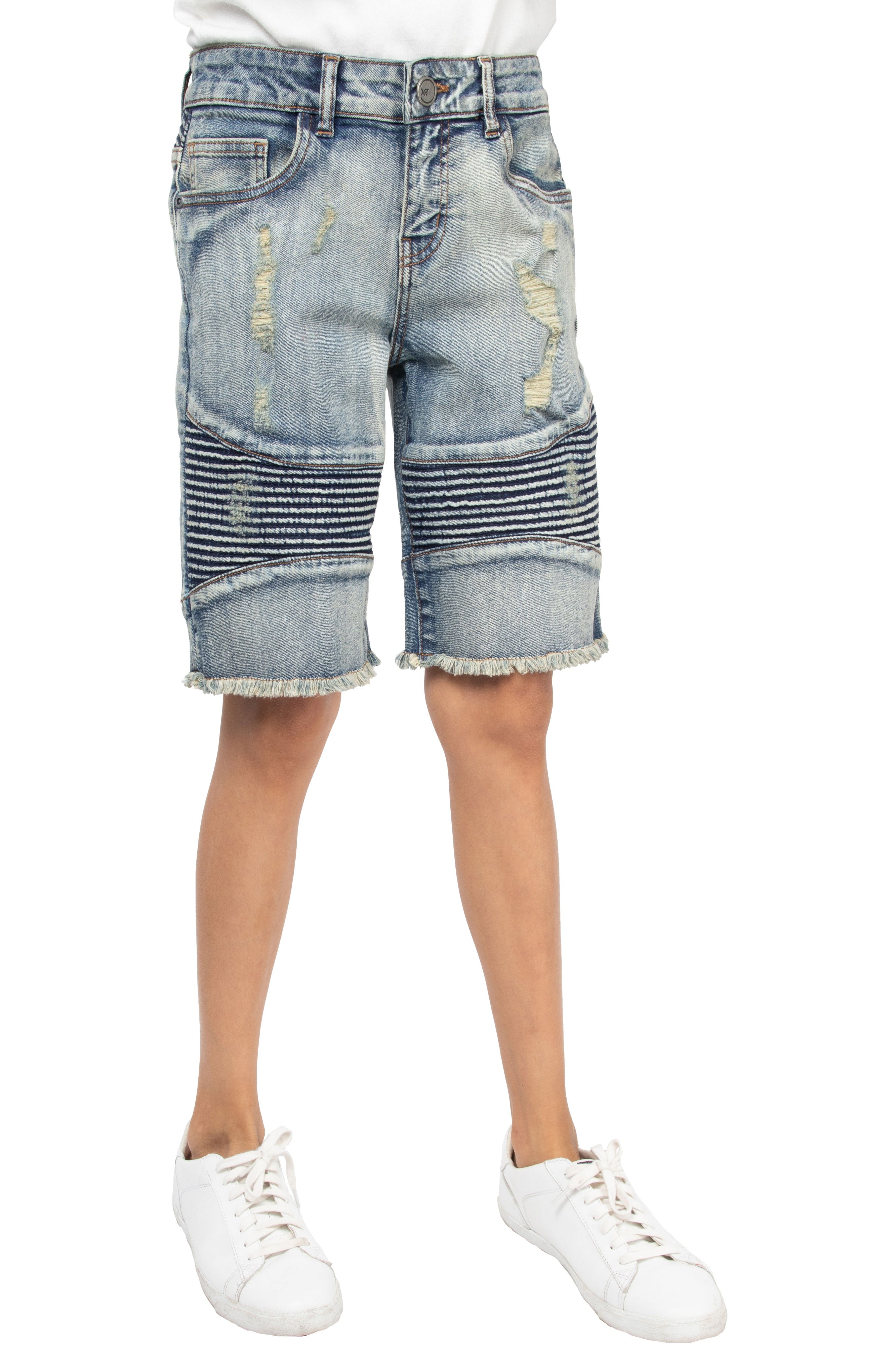 X RAY Kids Moto Biker Jean Shorts Slim Fit Boys Denim Shorts Stretch Washed Distressed