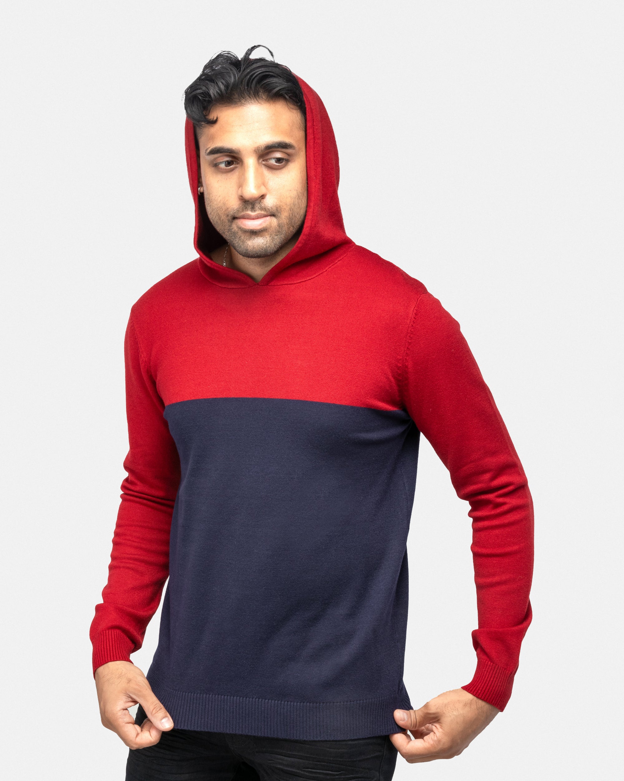 Stay warm and look good for any occasion with our colorful sweater collection for men. These hooded pullovers add a fashion-forward twist on the classic style, sporting longer waistlines and slim, physique-hugging profiles. Put those massive shoulders and lean, trim abs on display with our men's fitted sweaters. Dress to impress clients or keep it casual while running errands in these versatile and stylish Crewneck line sweaters.