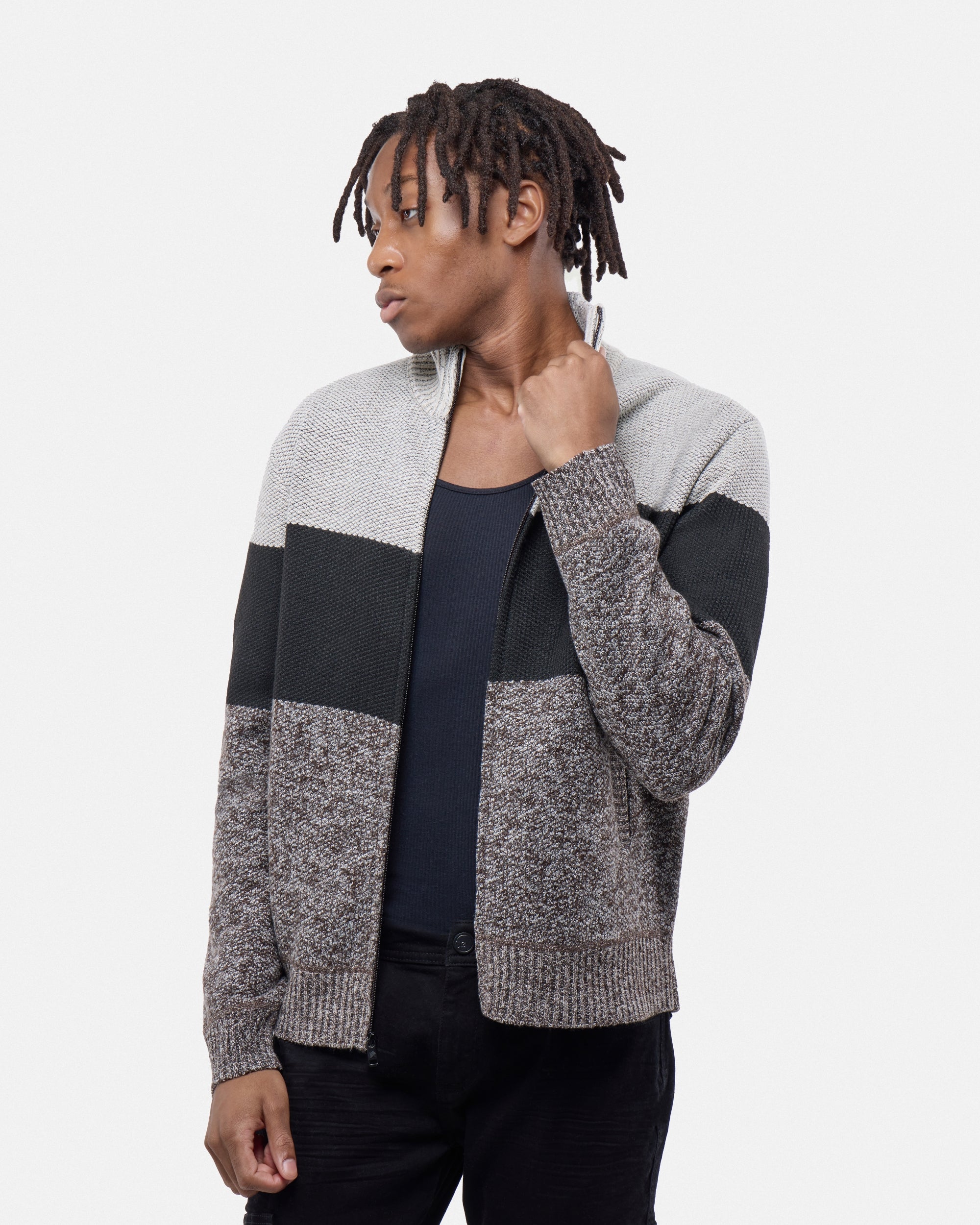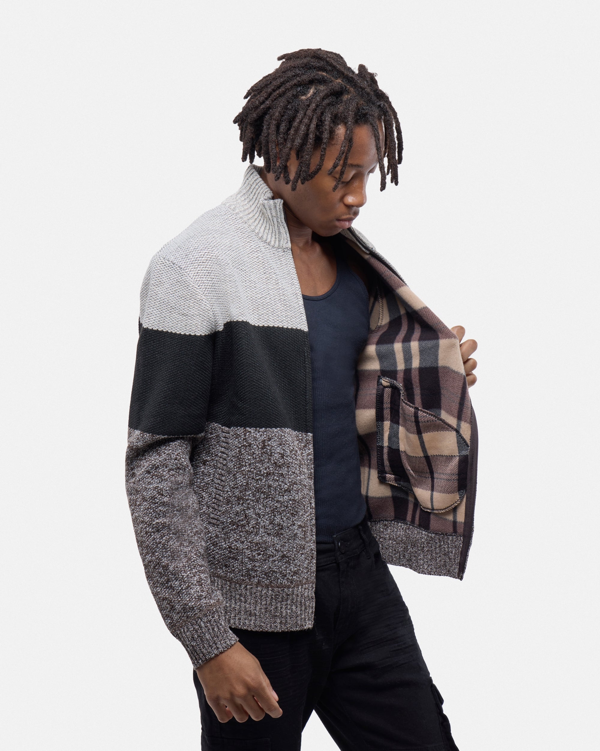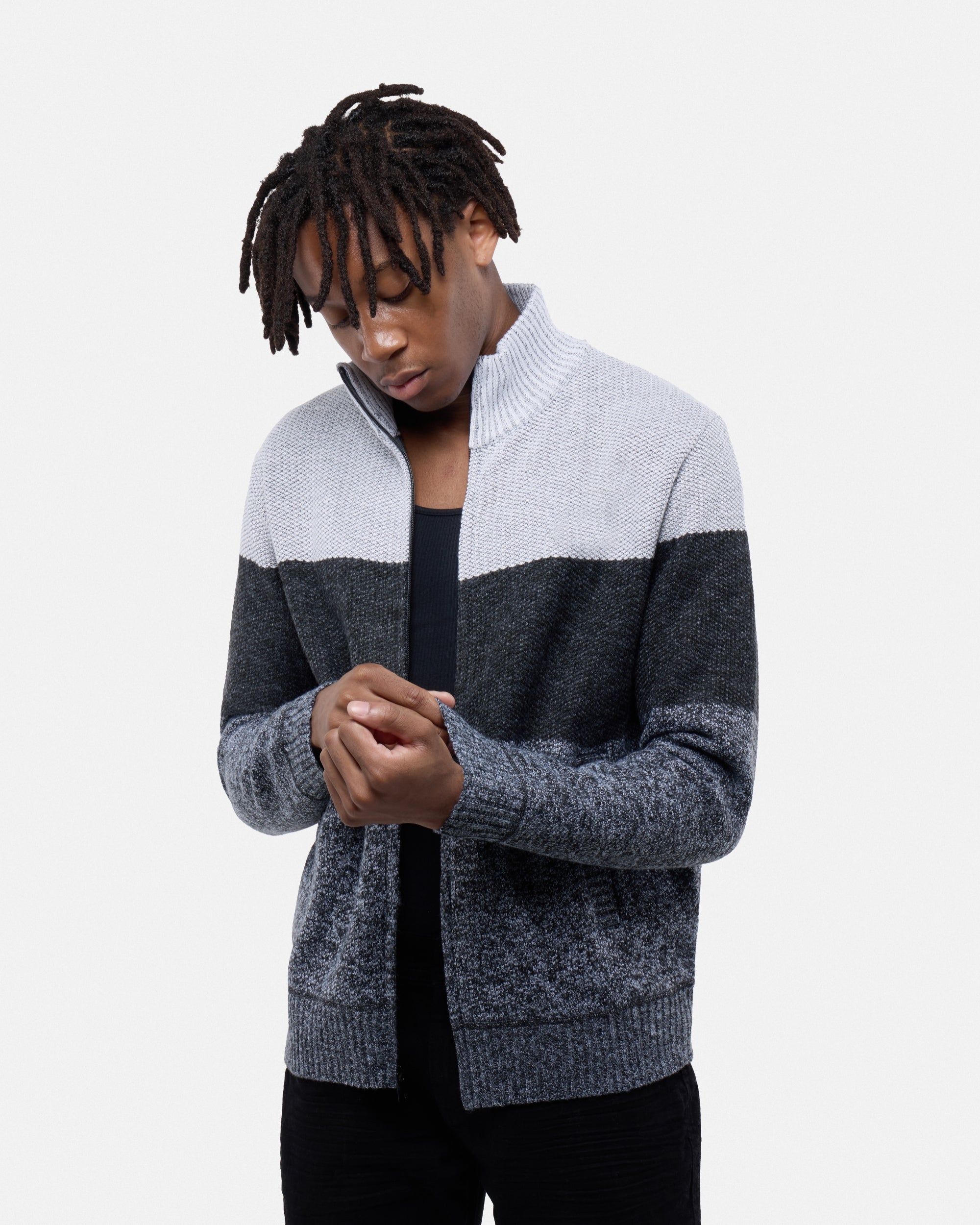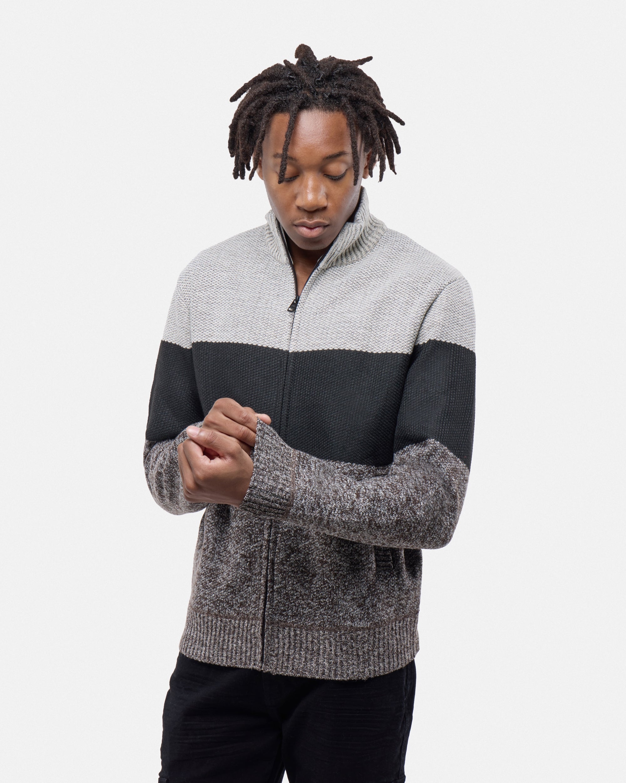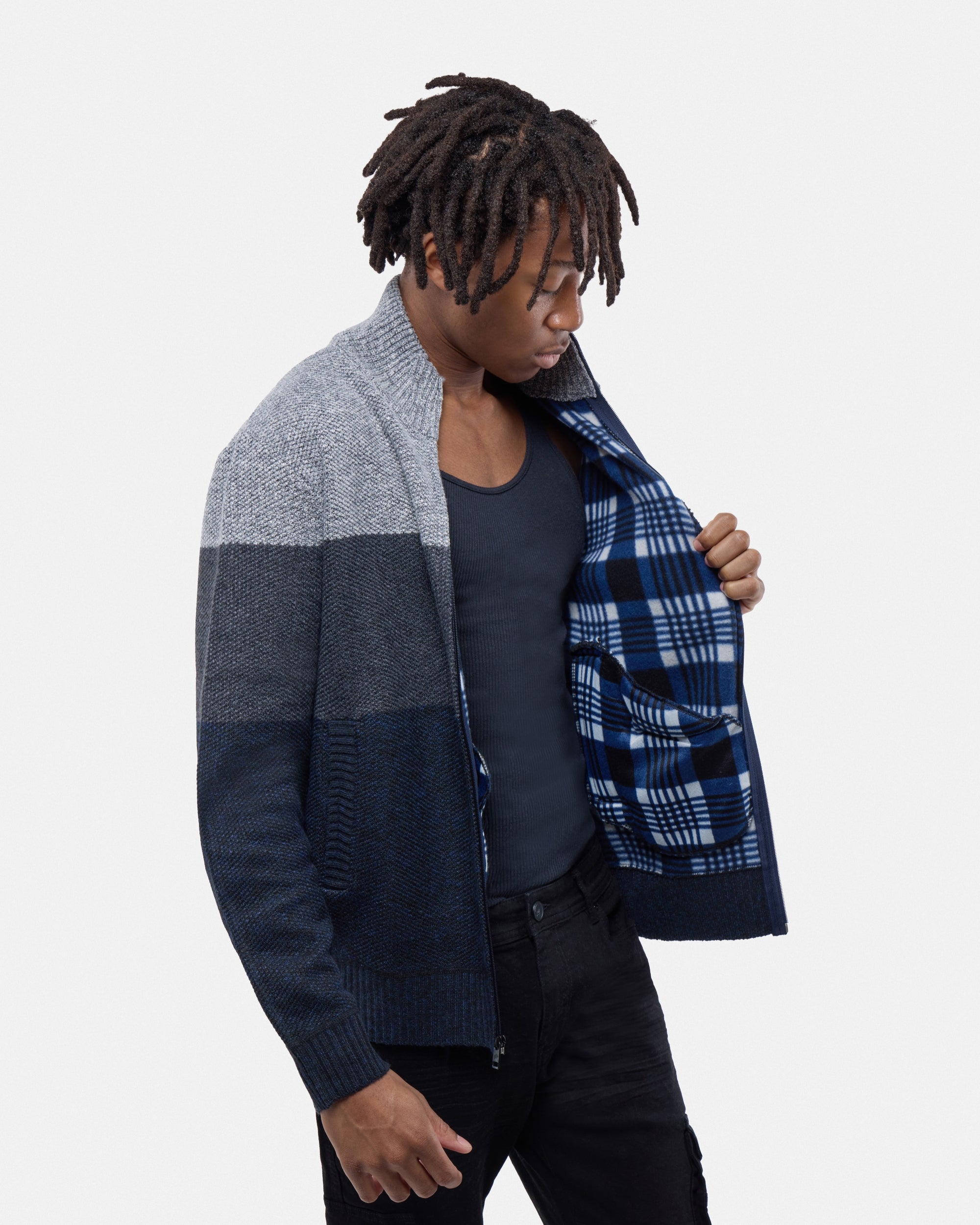 CMW-34096 | Men's Full Zip Mock Neck Sweater With Fleece Lining