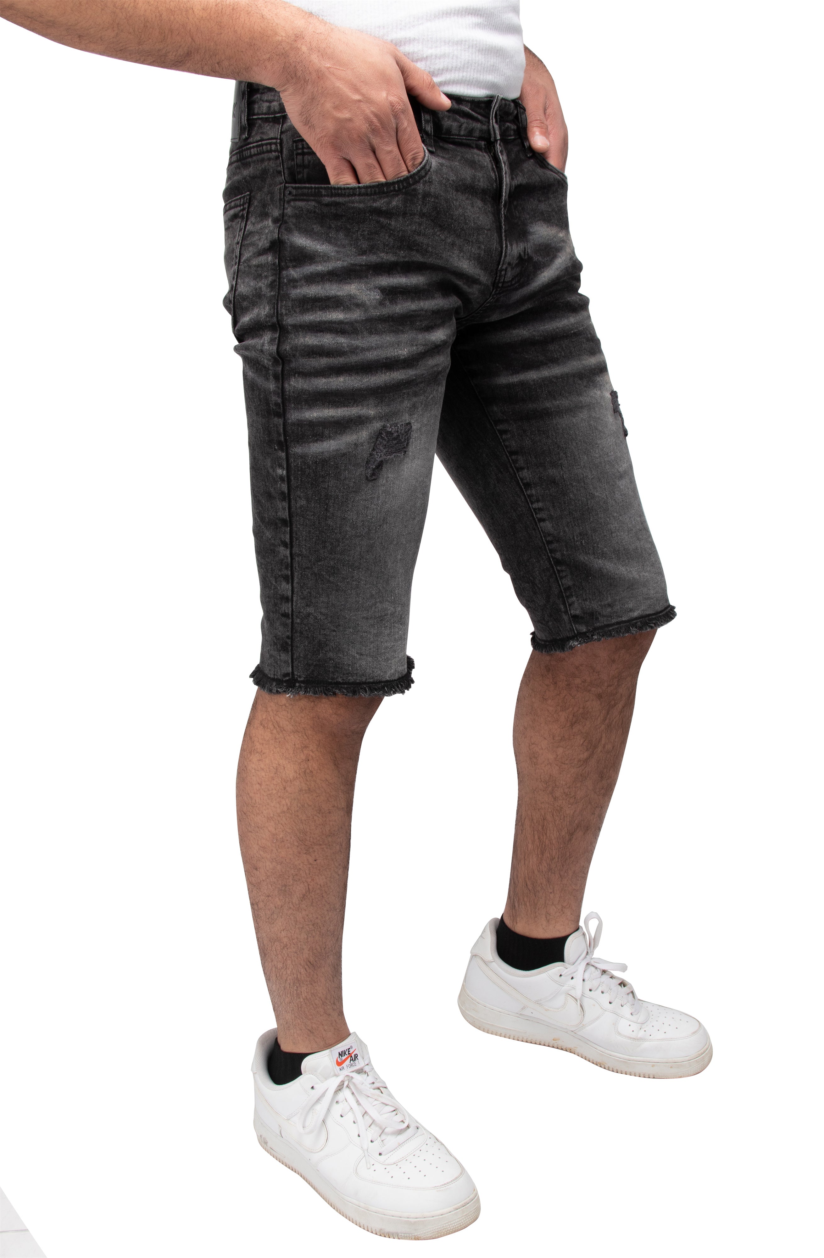 - STYLE : These men's denim shorts jeans have a distressed washed look and feature rips repair stitching and more giving a slim stylish look for all day use. Uniquely ripped and stitching details making these shorts modern and fashionable as streetwear or casual wear.