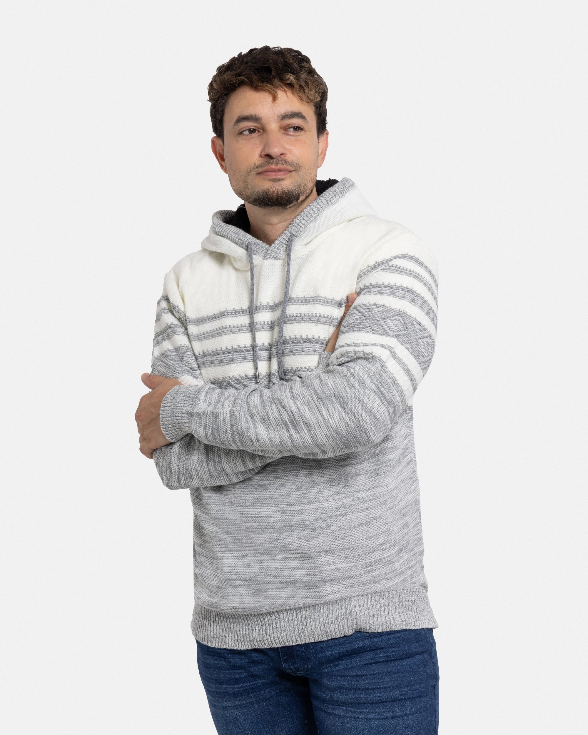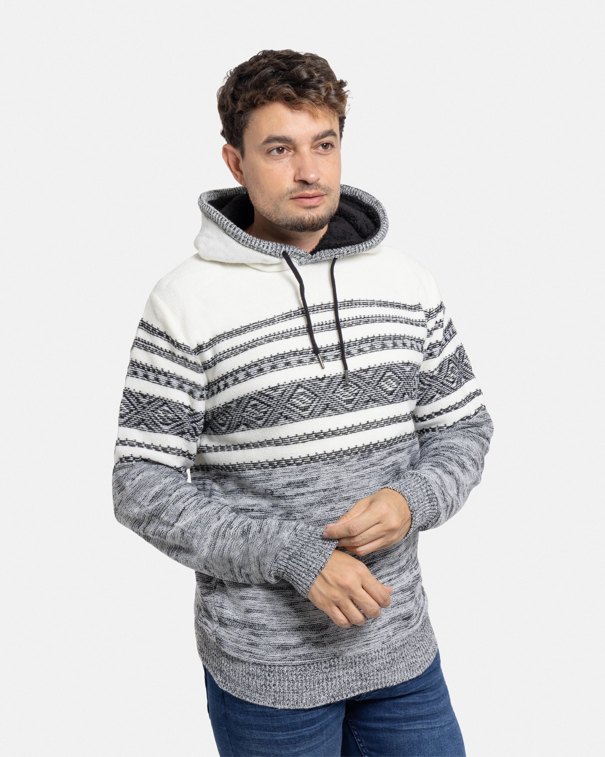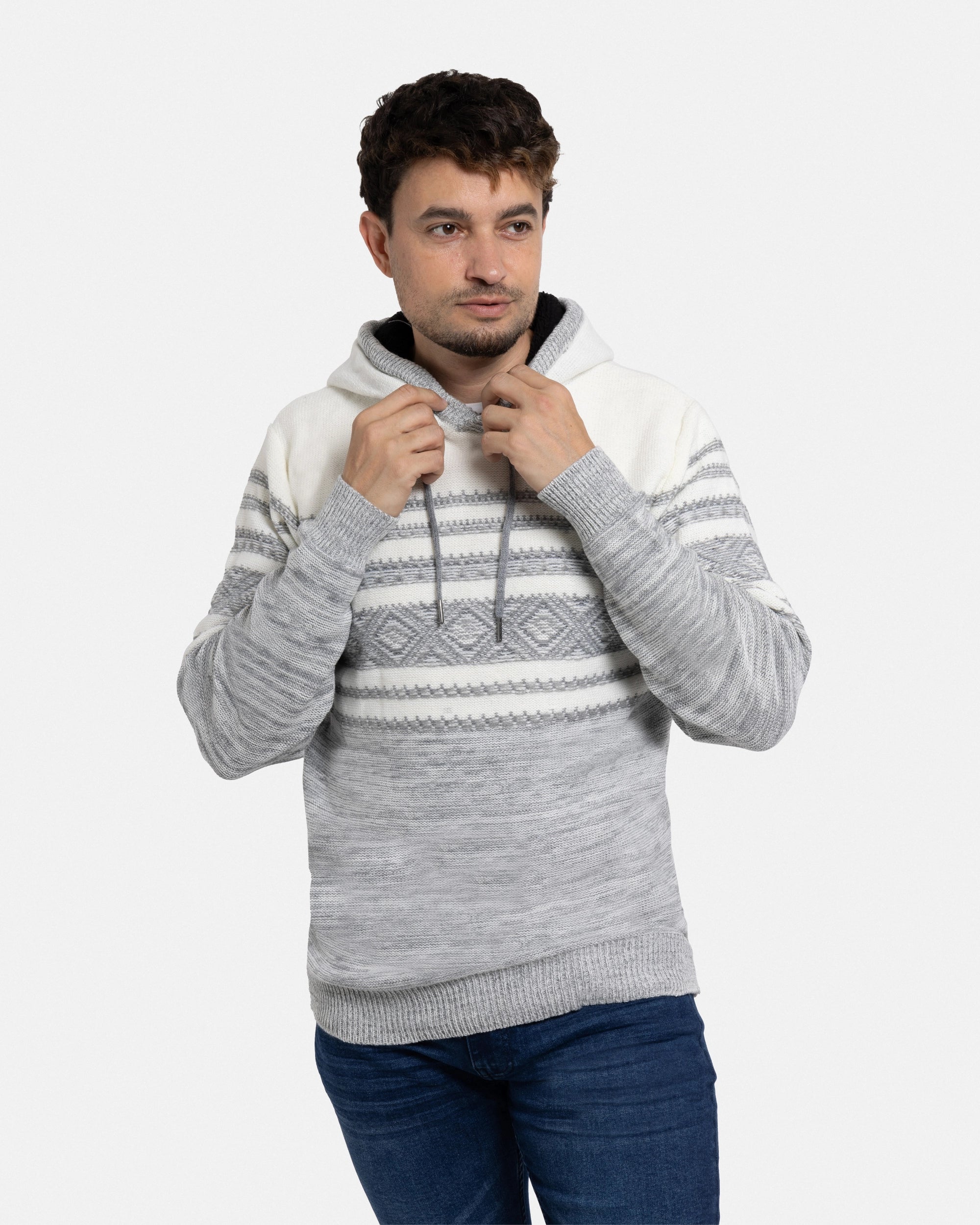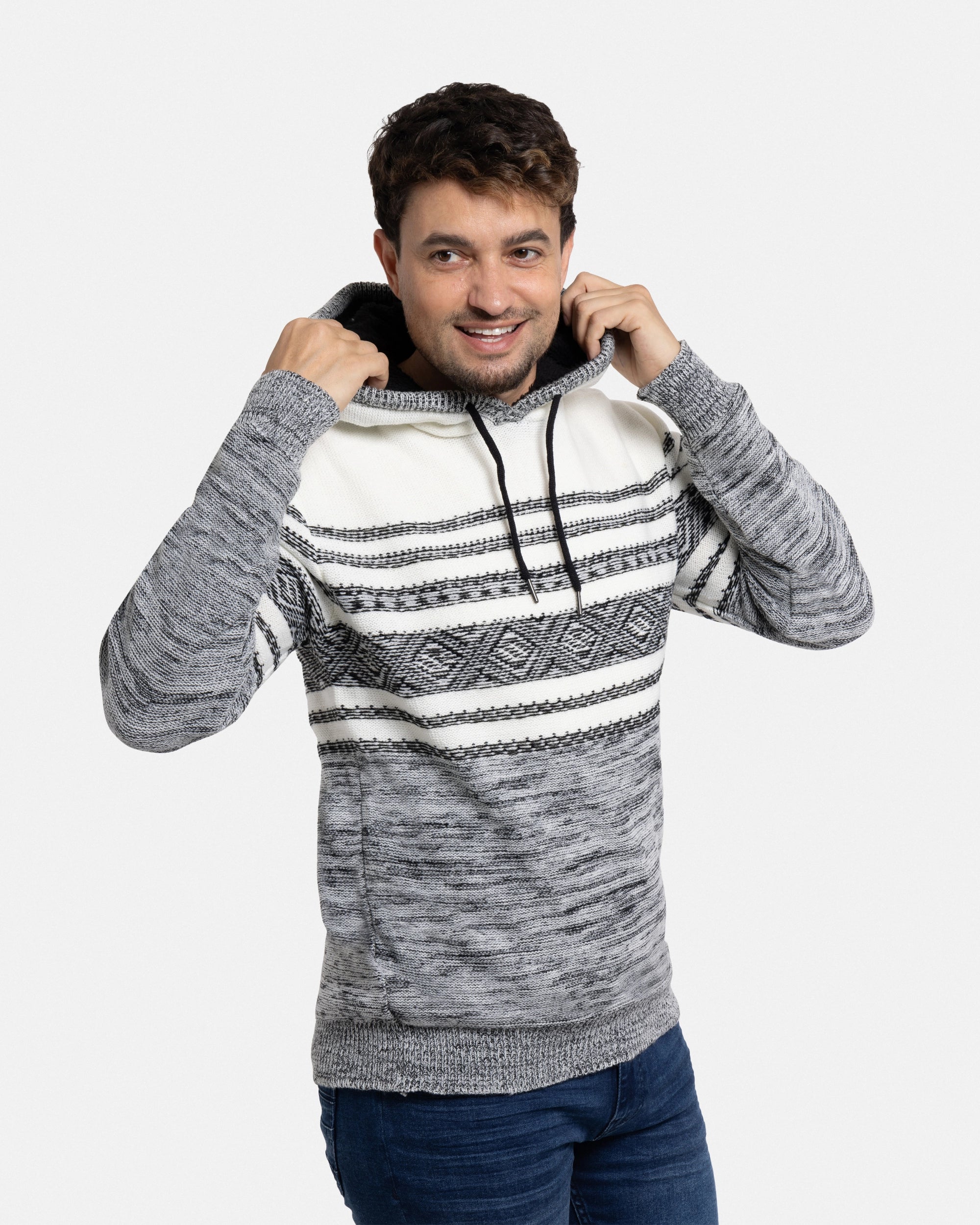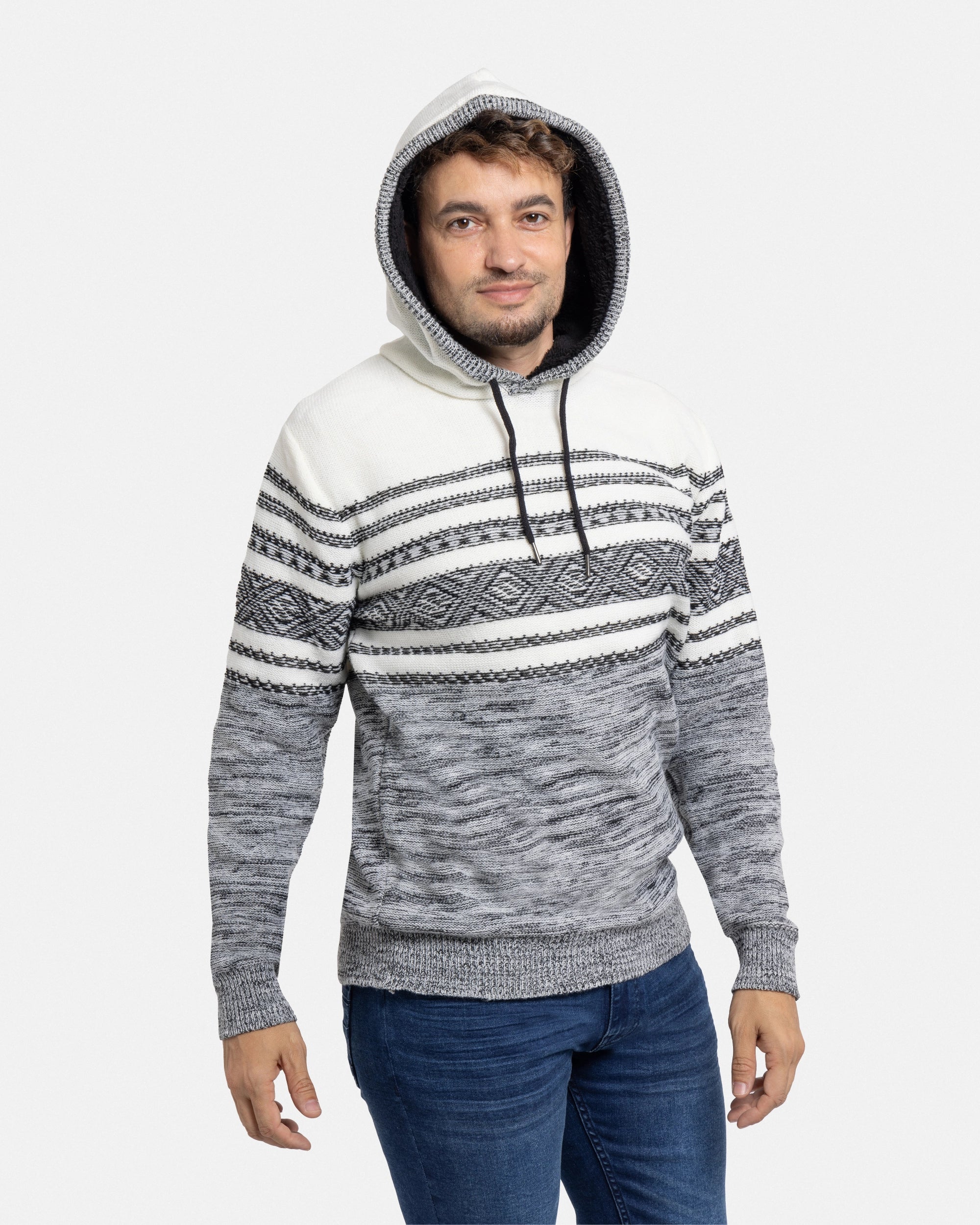 X RAY Men's Stripe Pattern Pullover Hooded Sweater