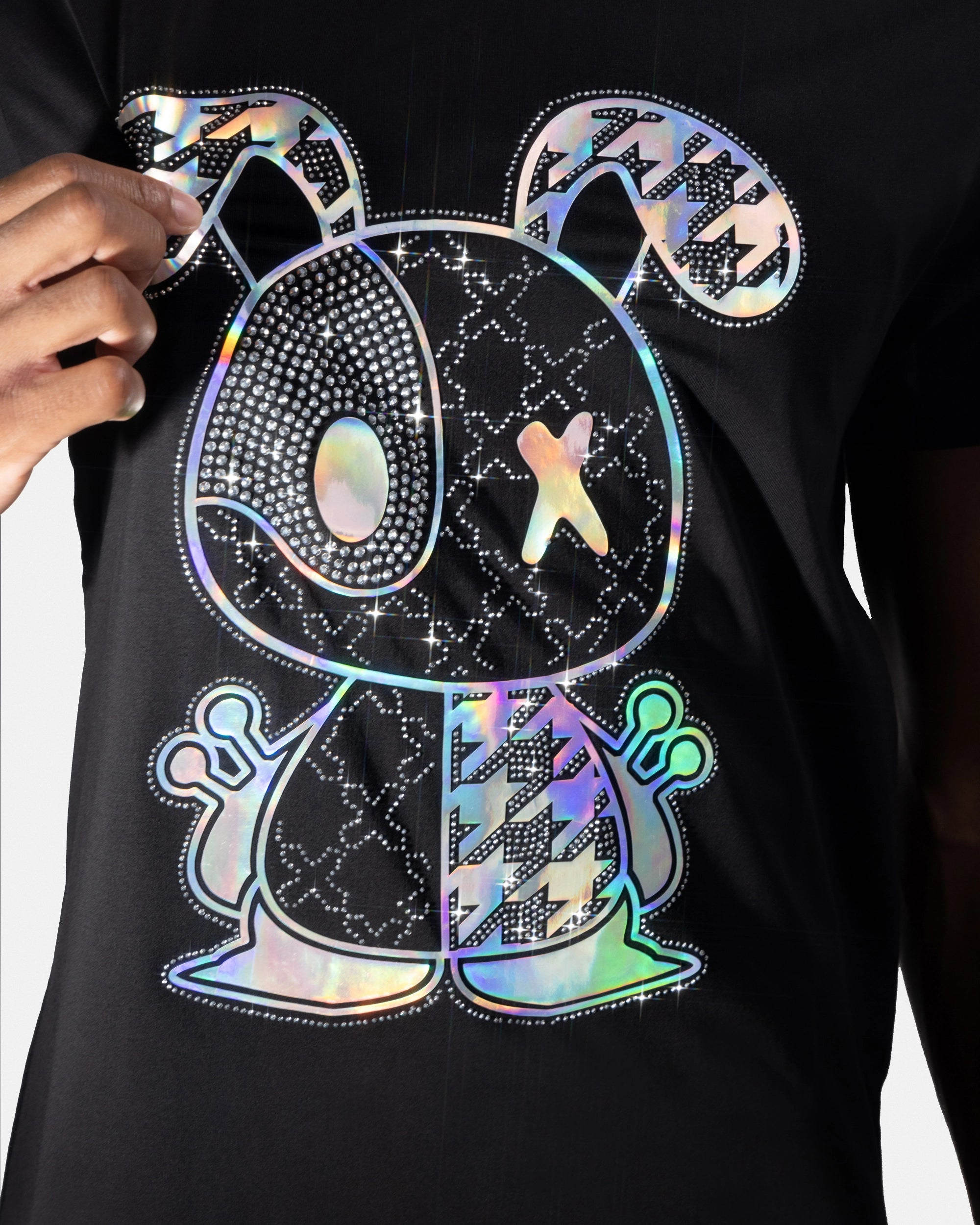 Heads or Tails Men's Slim Fit Crewneck Rhinestone Studded Graphic Printed T-Shirt Stone Tee Transparent Pattern Bunny