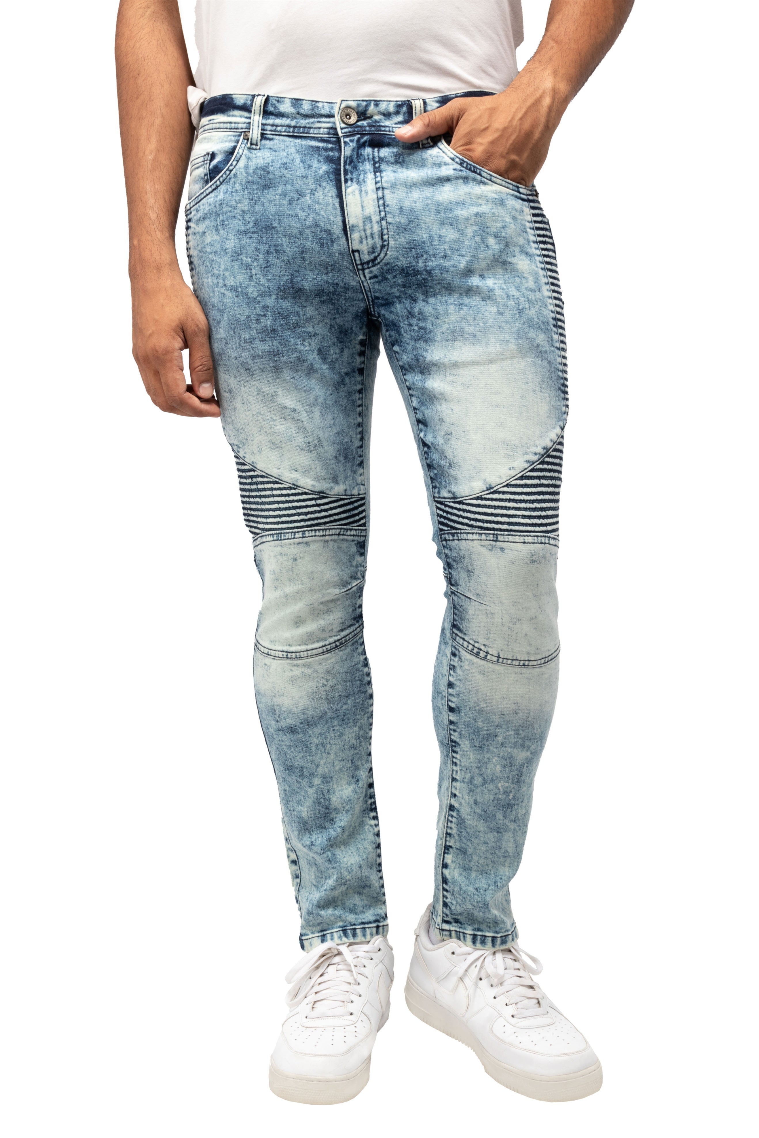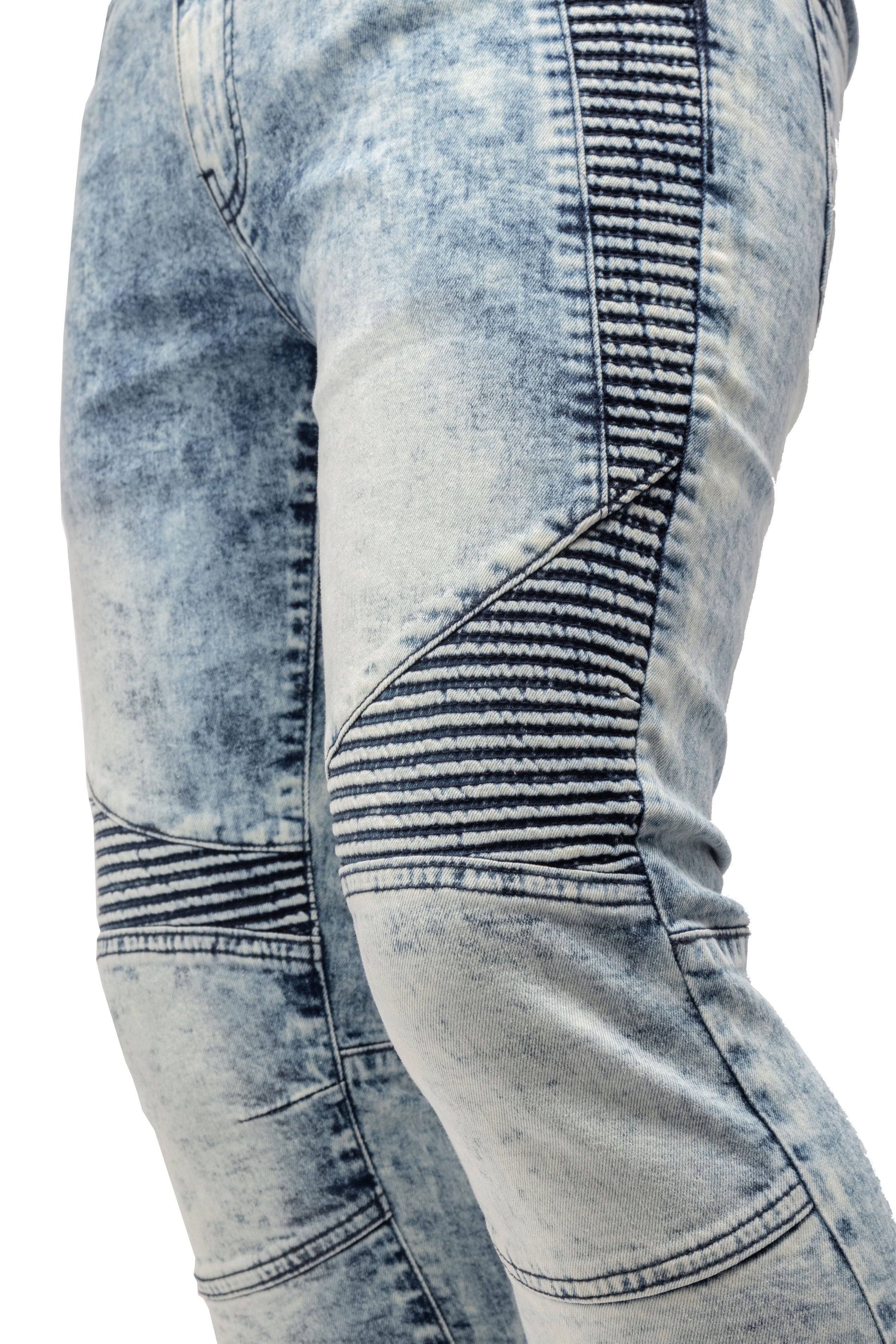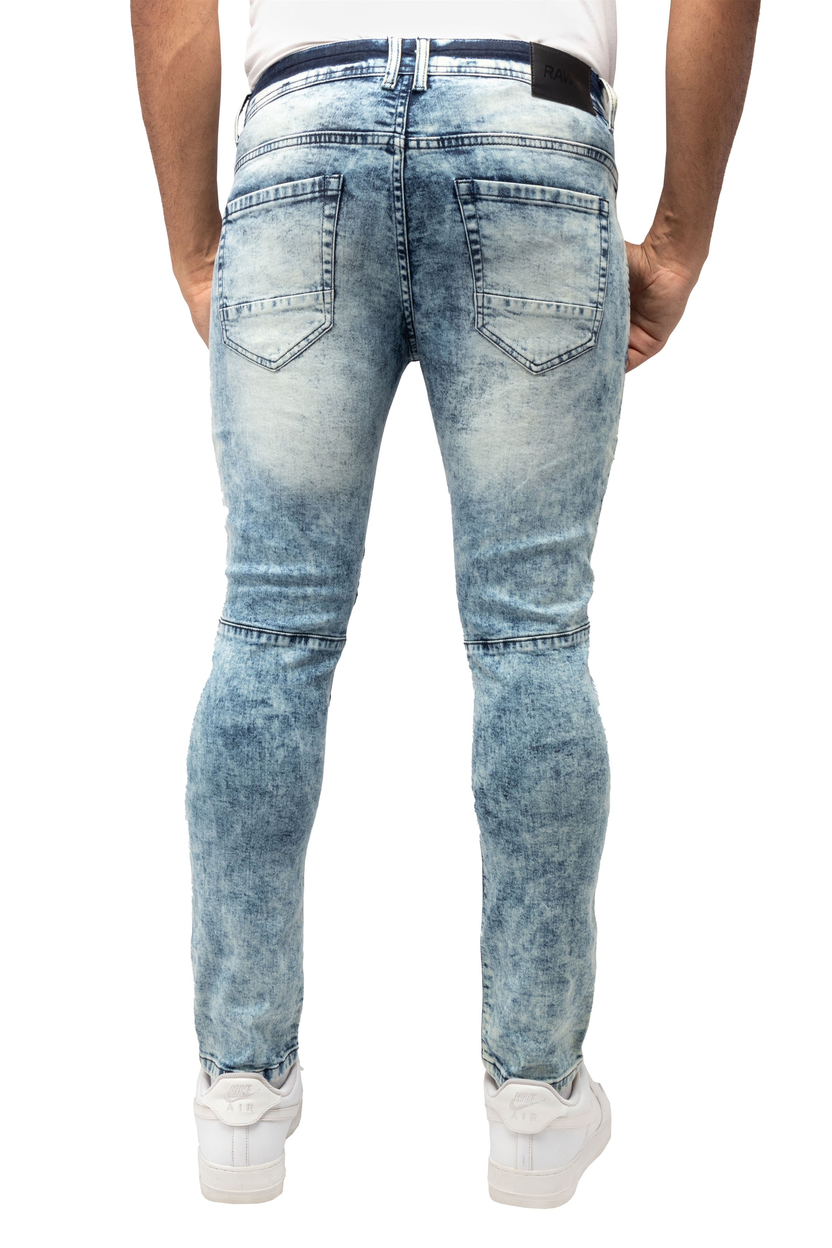 RAW X Men's Slim Fit Biker Jean Comfy Flex Stretch Moto Wash Denim Jeans Pants