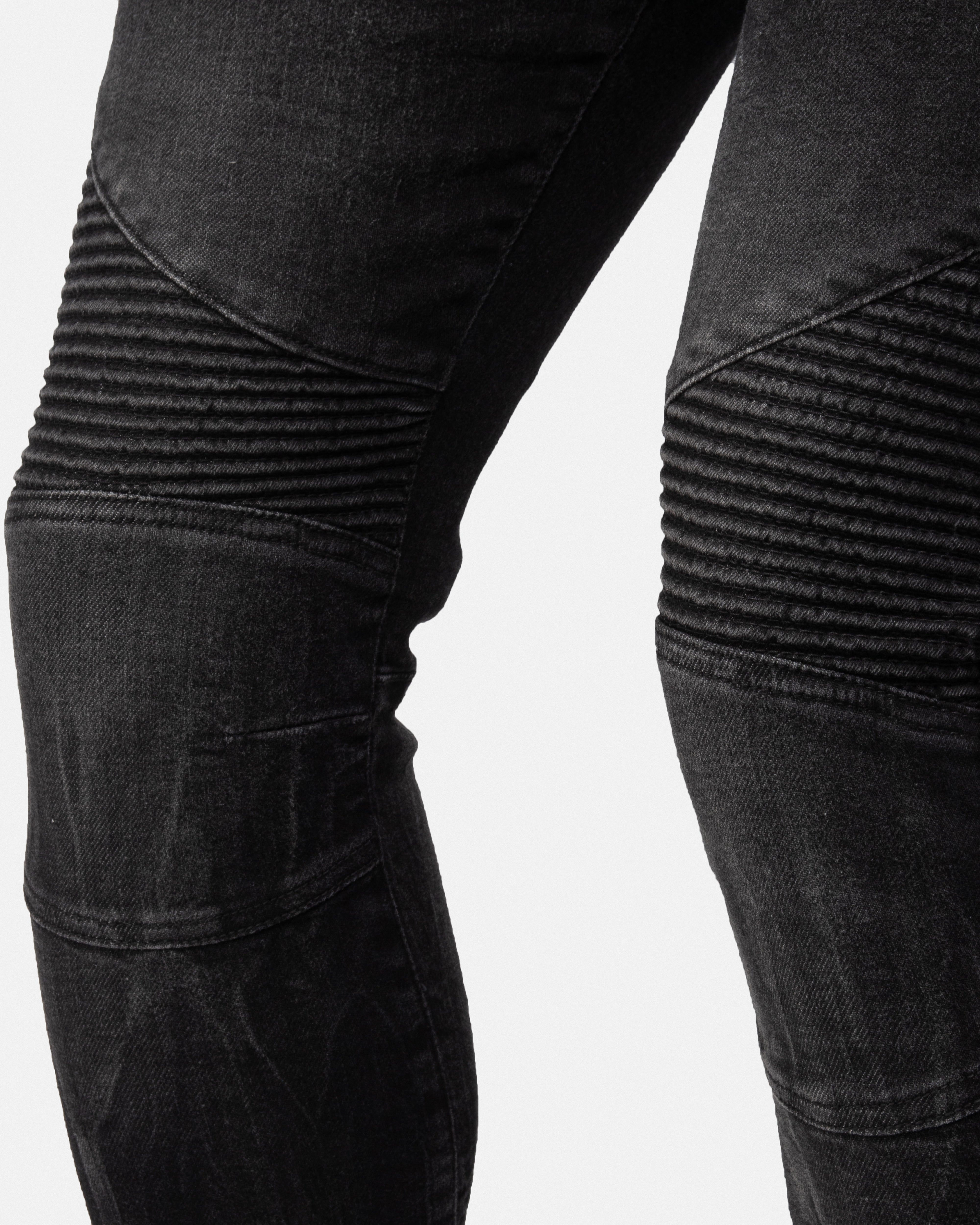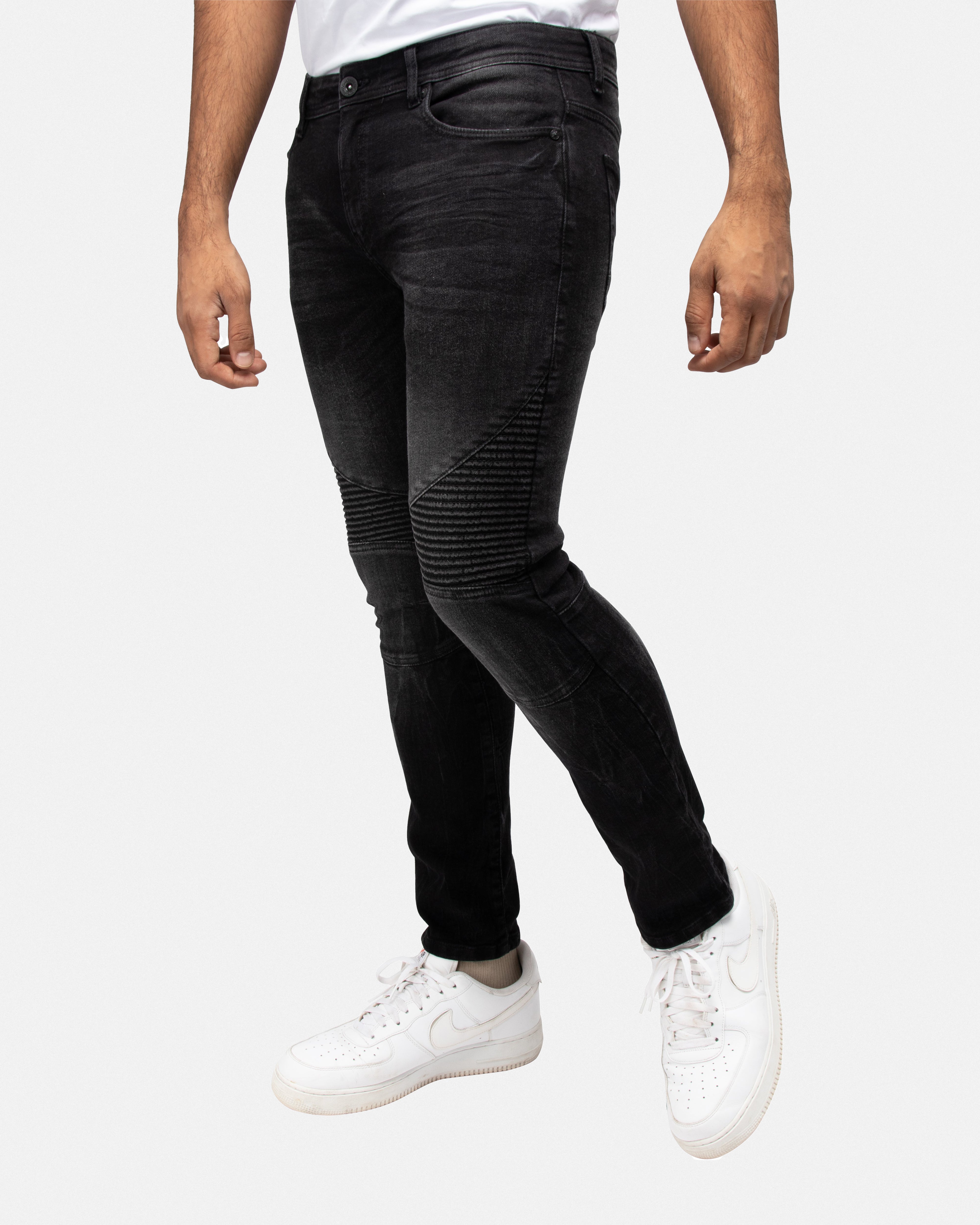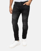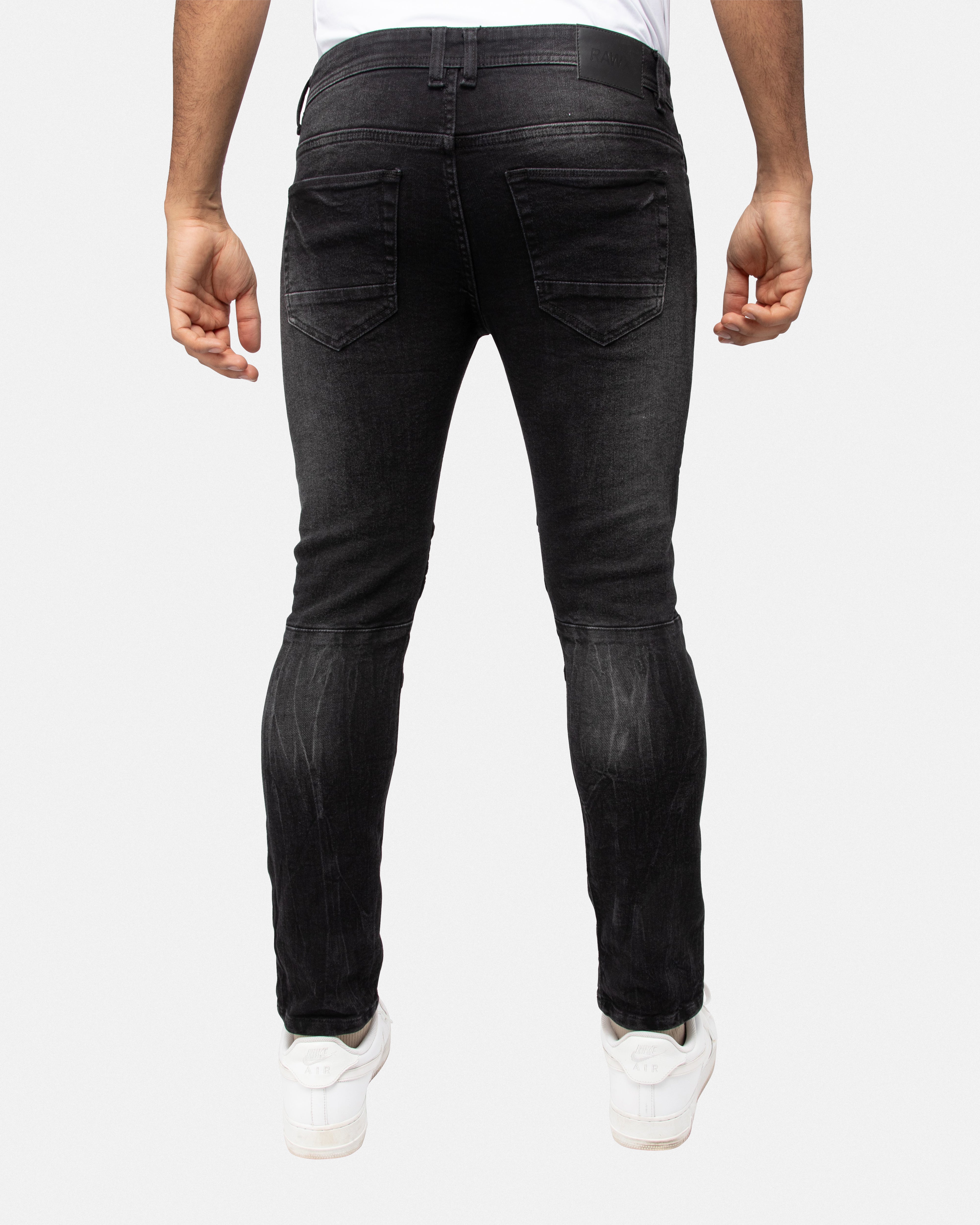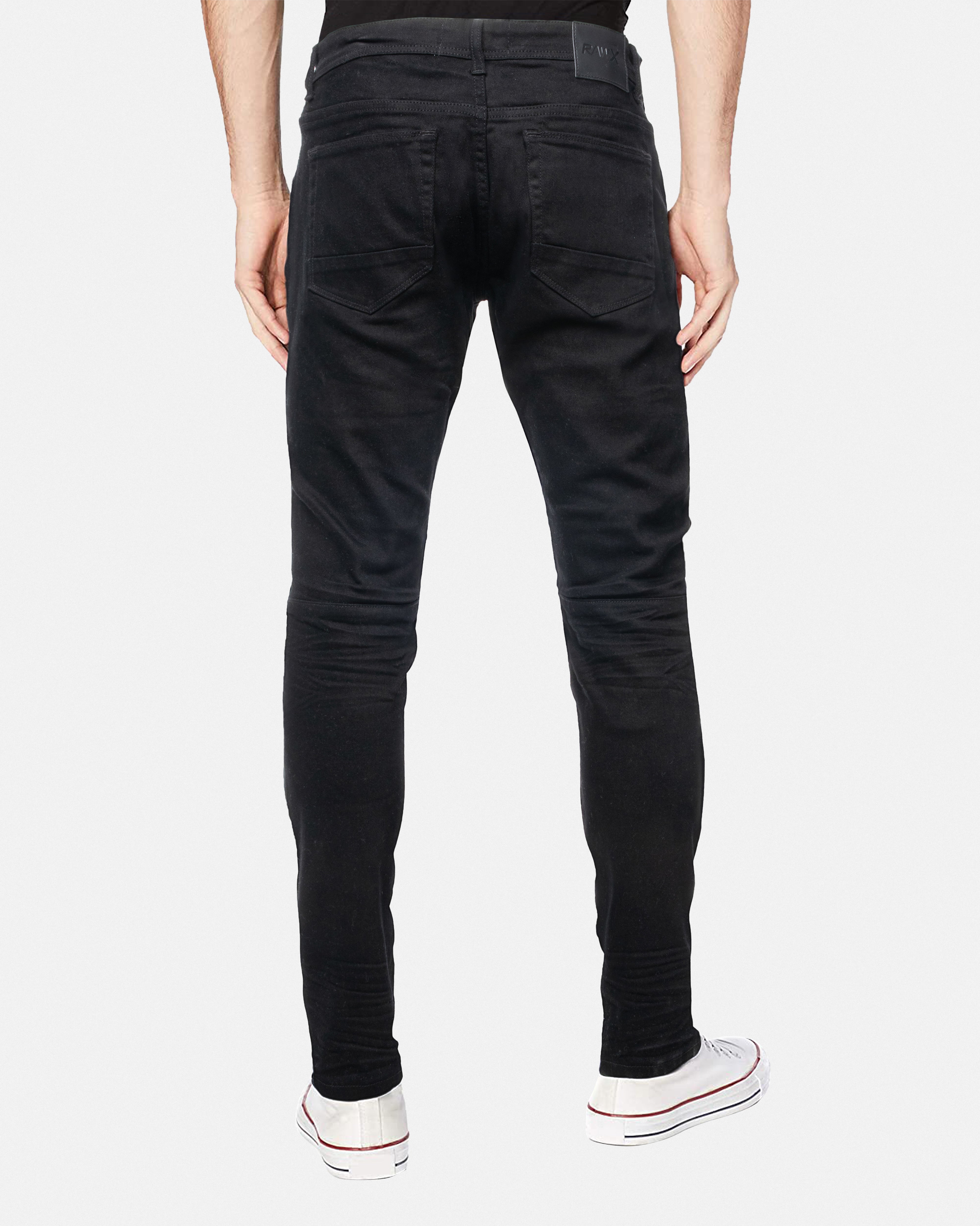 RAW X Men's Skinny Fit Moto Biker Jeans With Rips