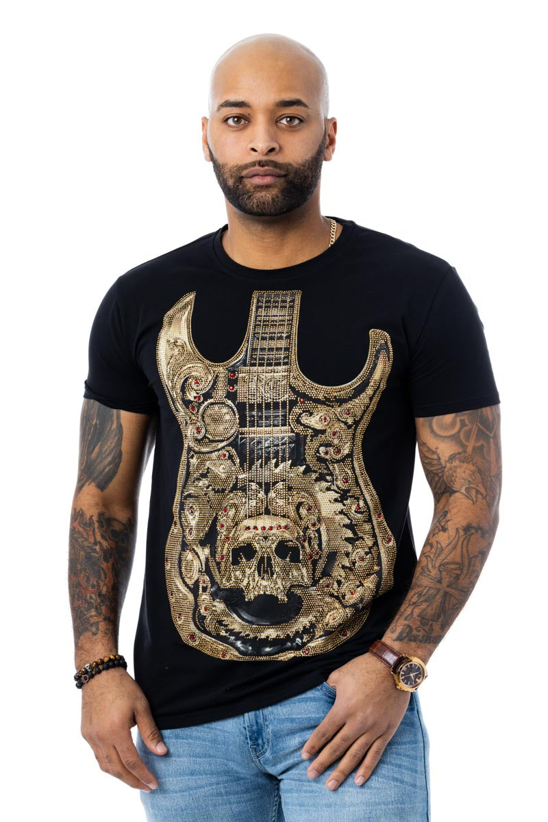HEADS OR TAILS Rhinestone Studded Graphic Printed T-Shirt