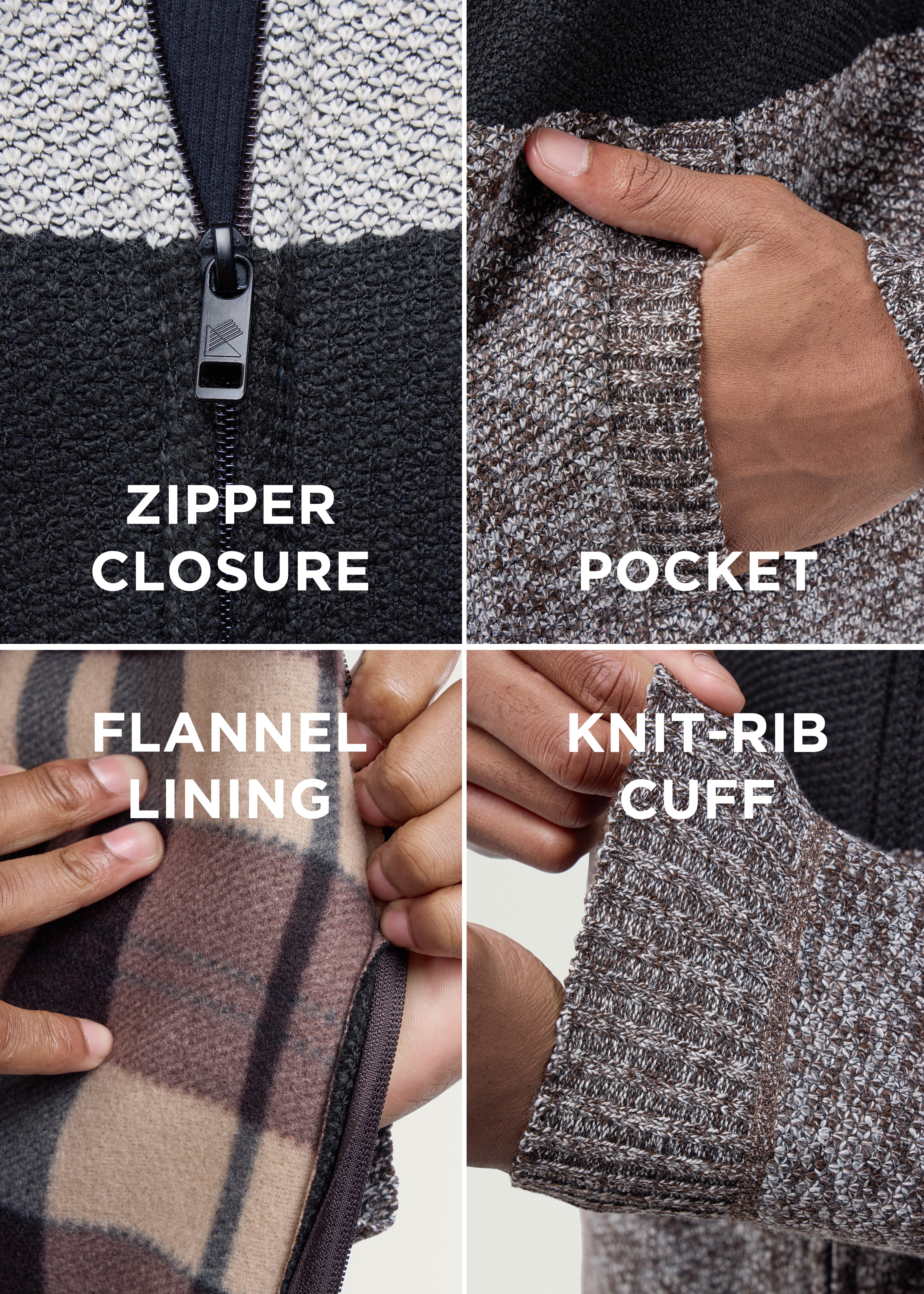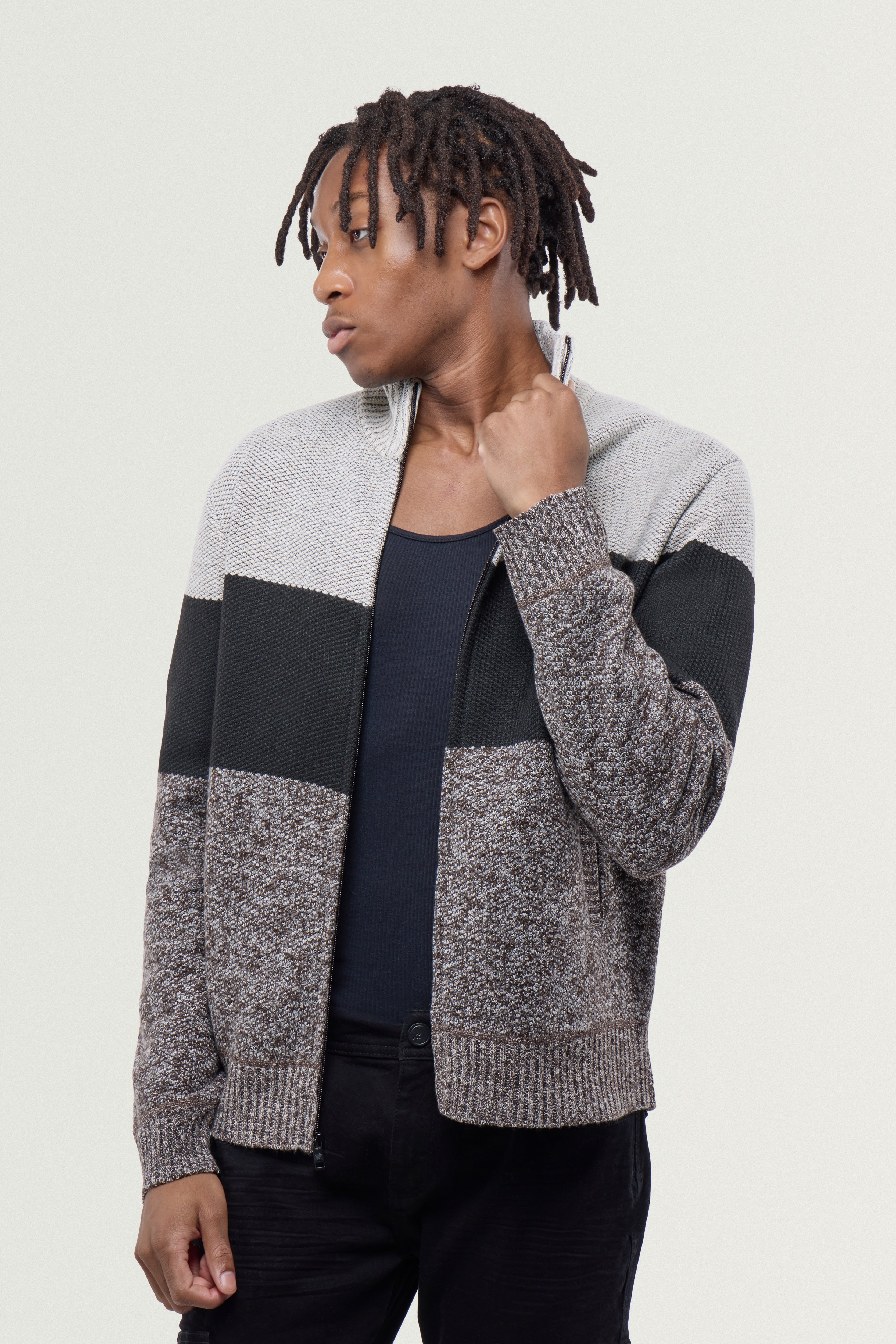 CMW-34096 | Men's Full Zip Mock Neck Sweater With Fleece Lining
