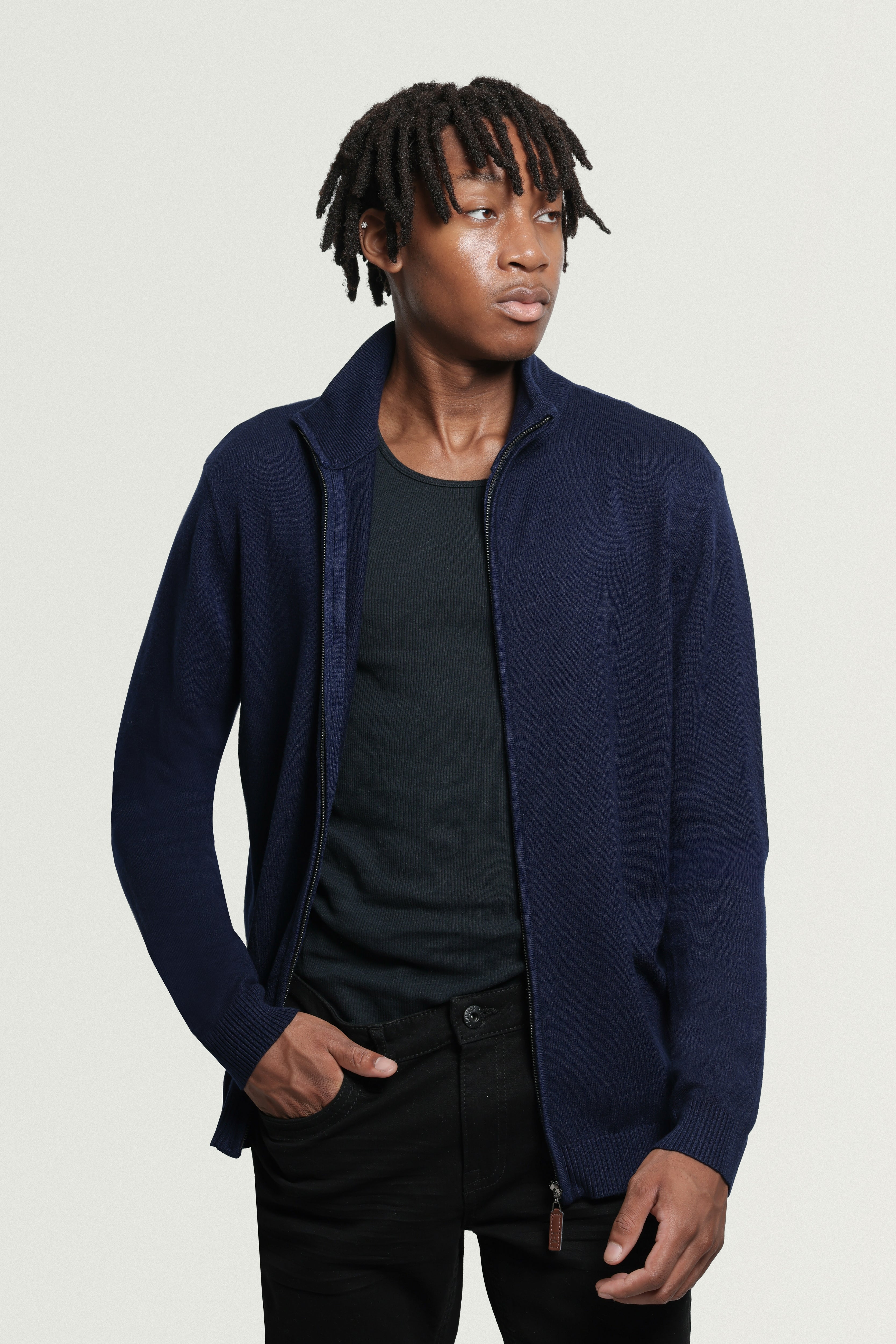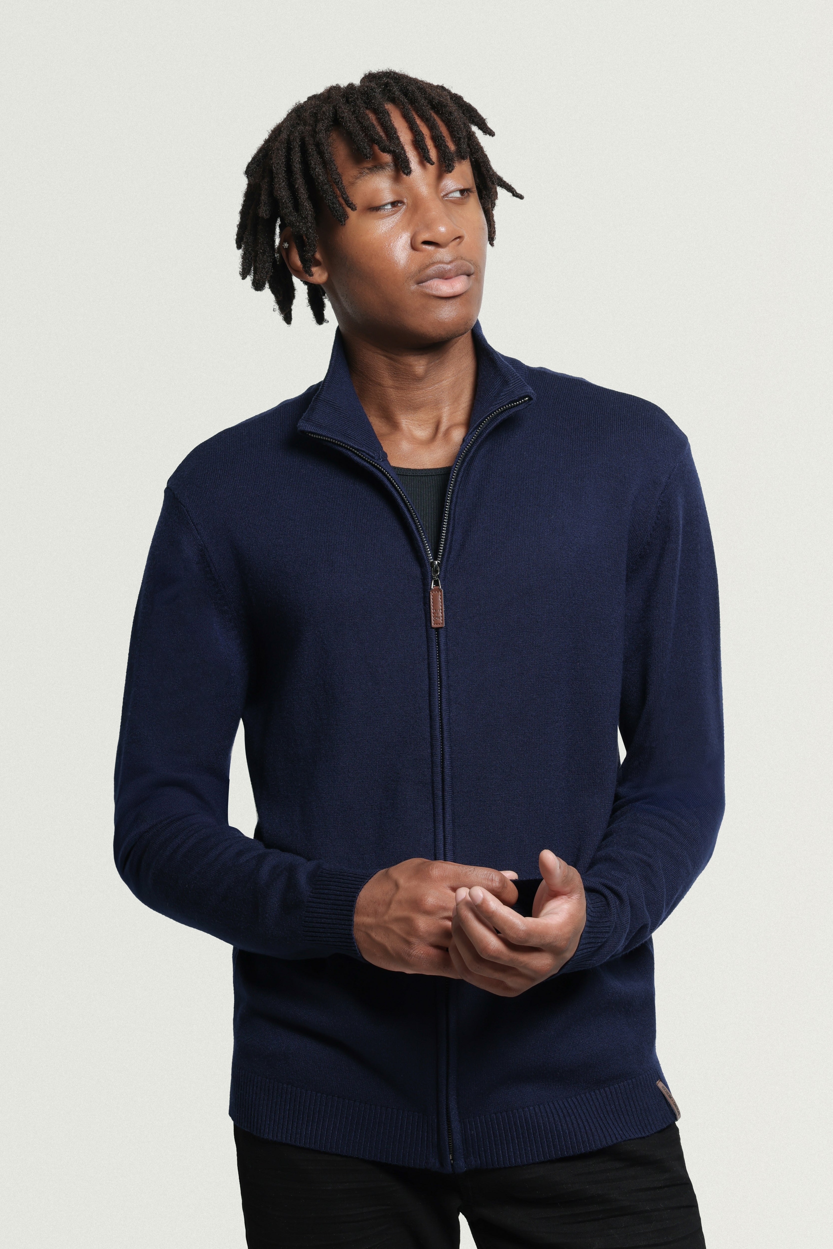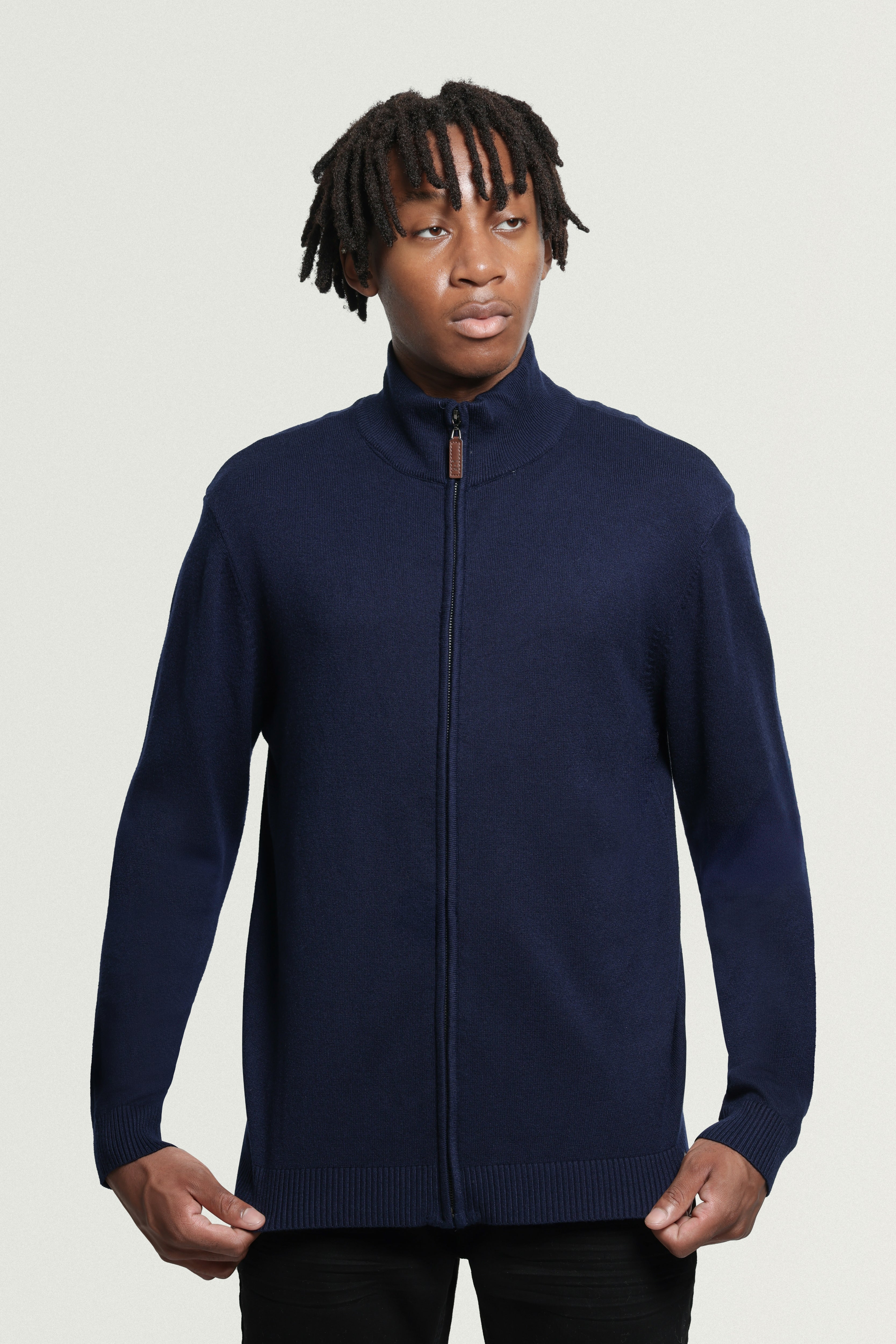 - FIT: Our Men's Sweater Jacket are Slim Fit, Ribbed Mock Neck, Cuffs And Waistline. Ultra Comfortable Soft Blend Of Fabrics Standard Length Rests A Bit Below Waist For Maximum Comfort. Elegant Stylish Look