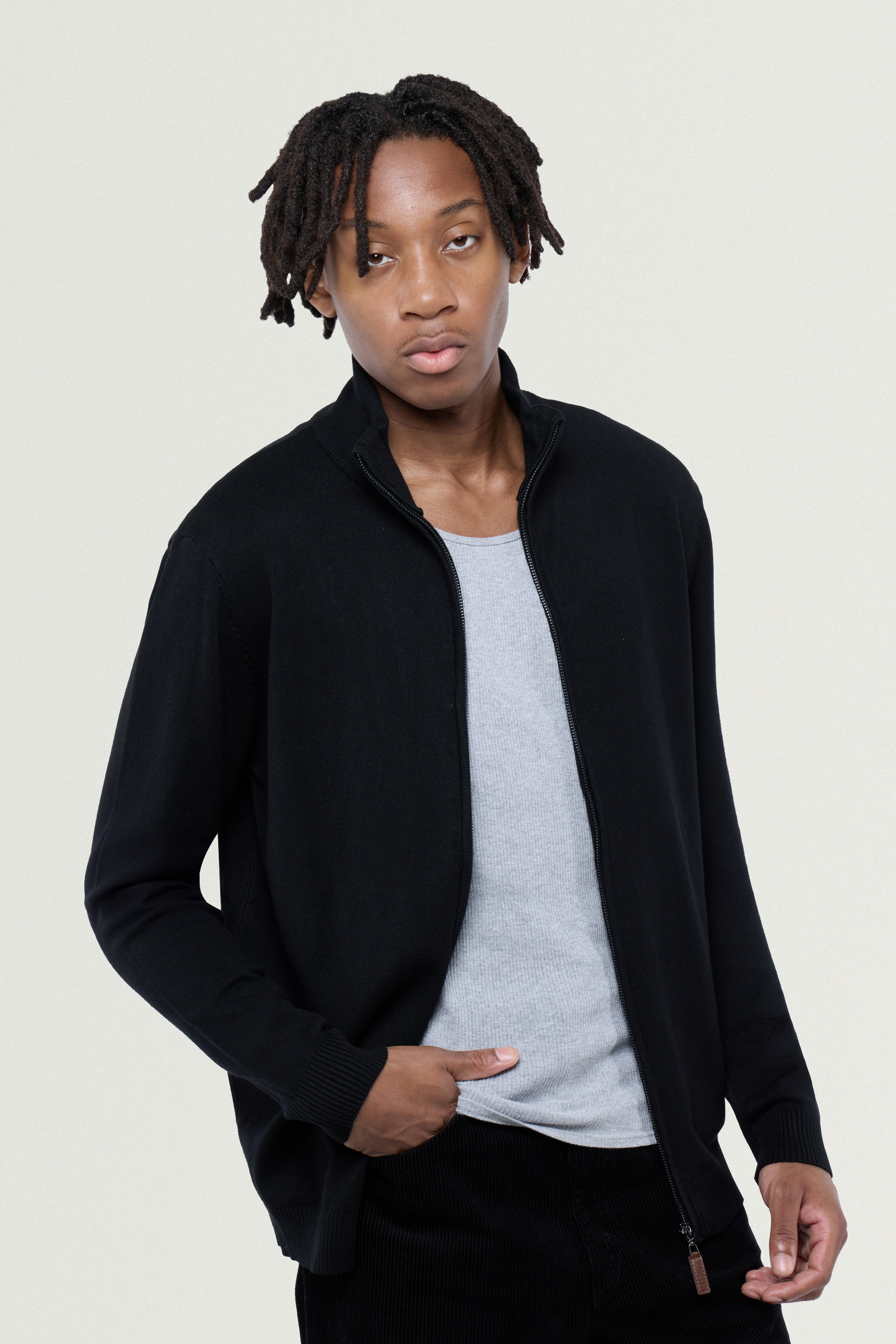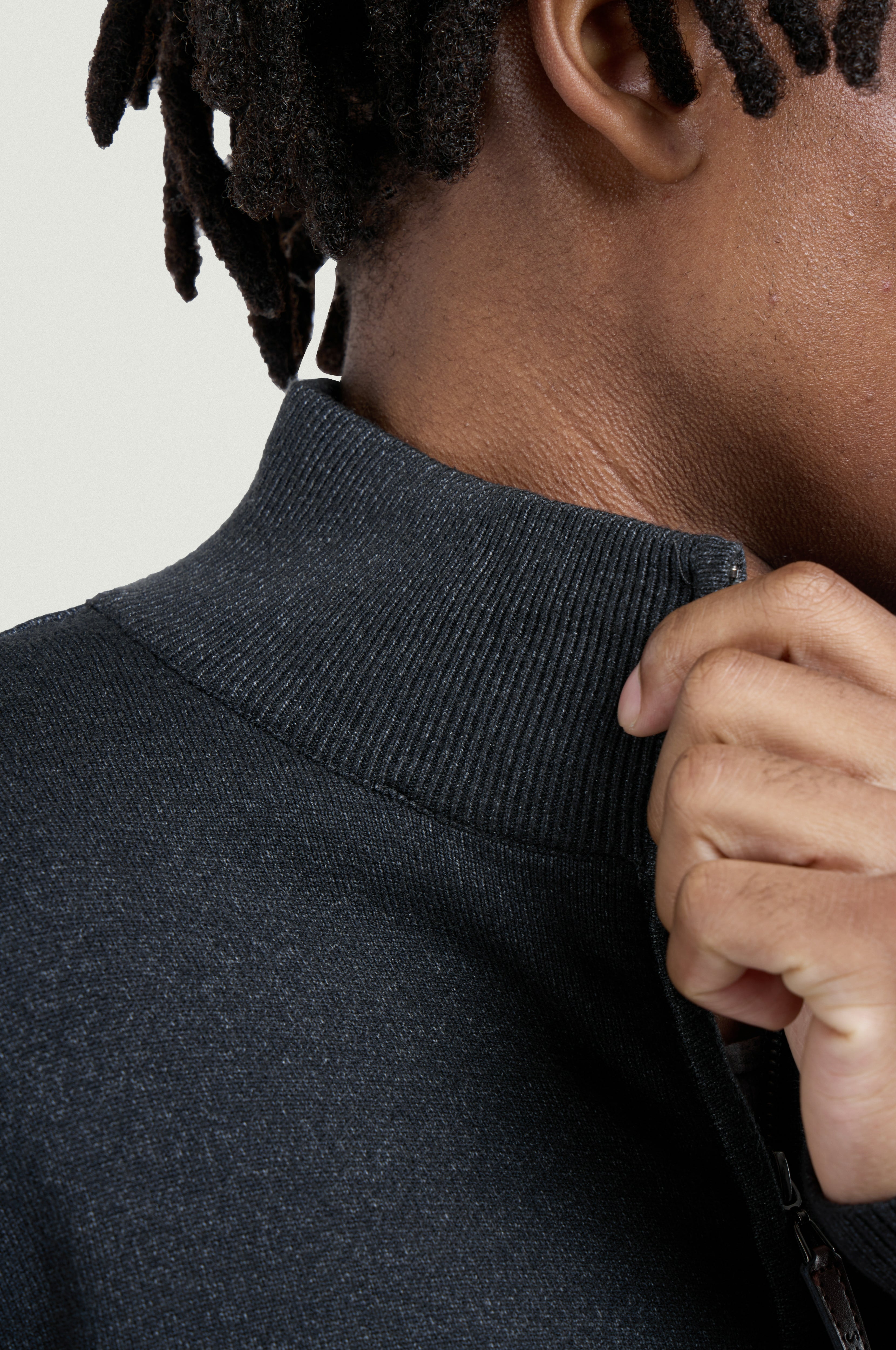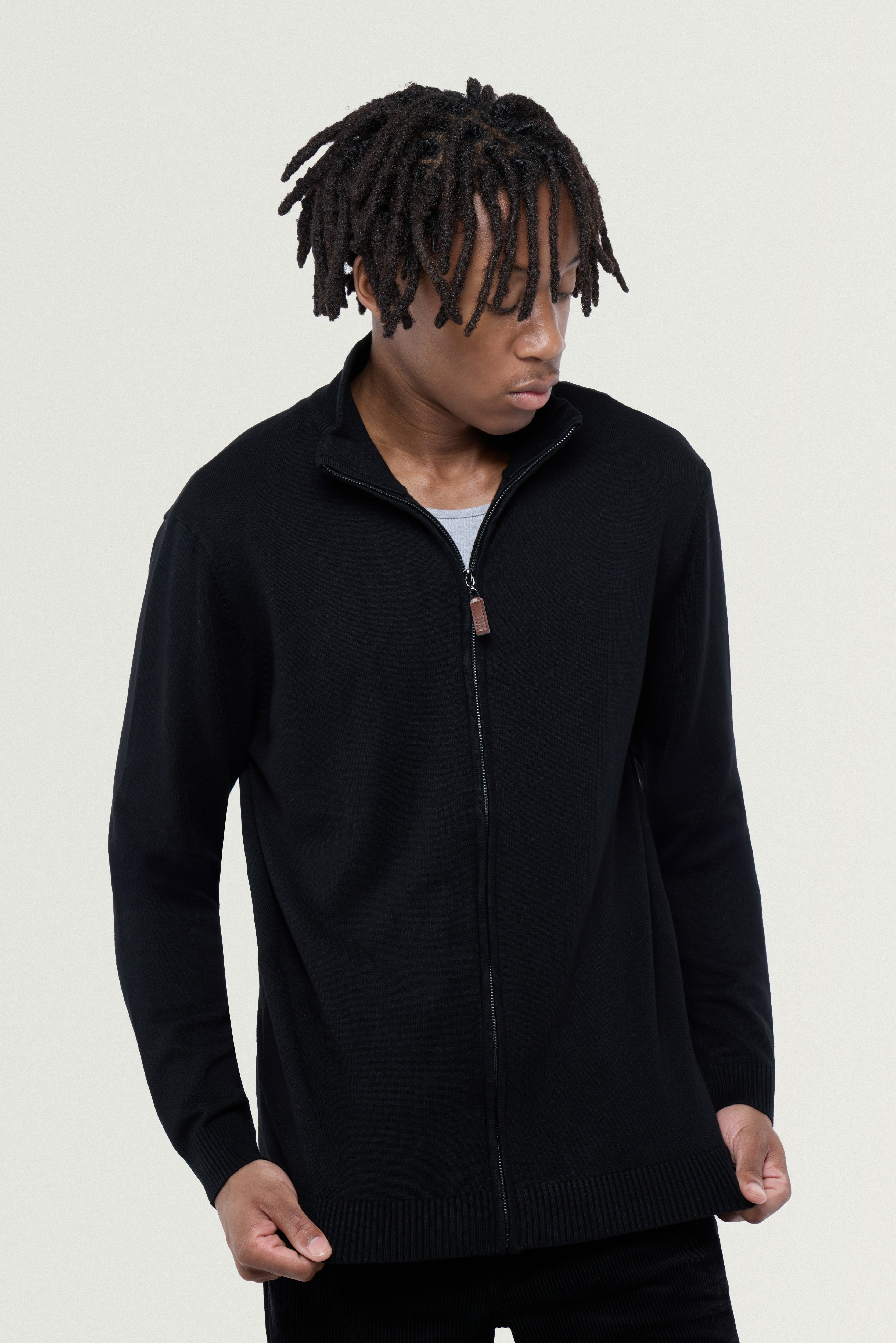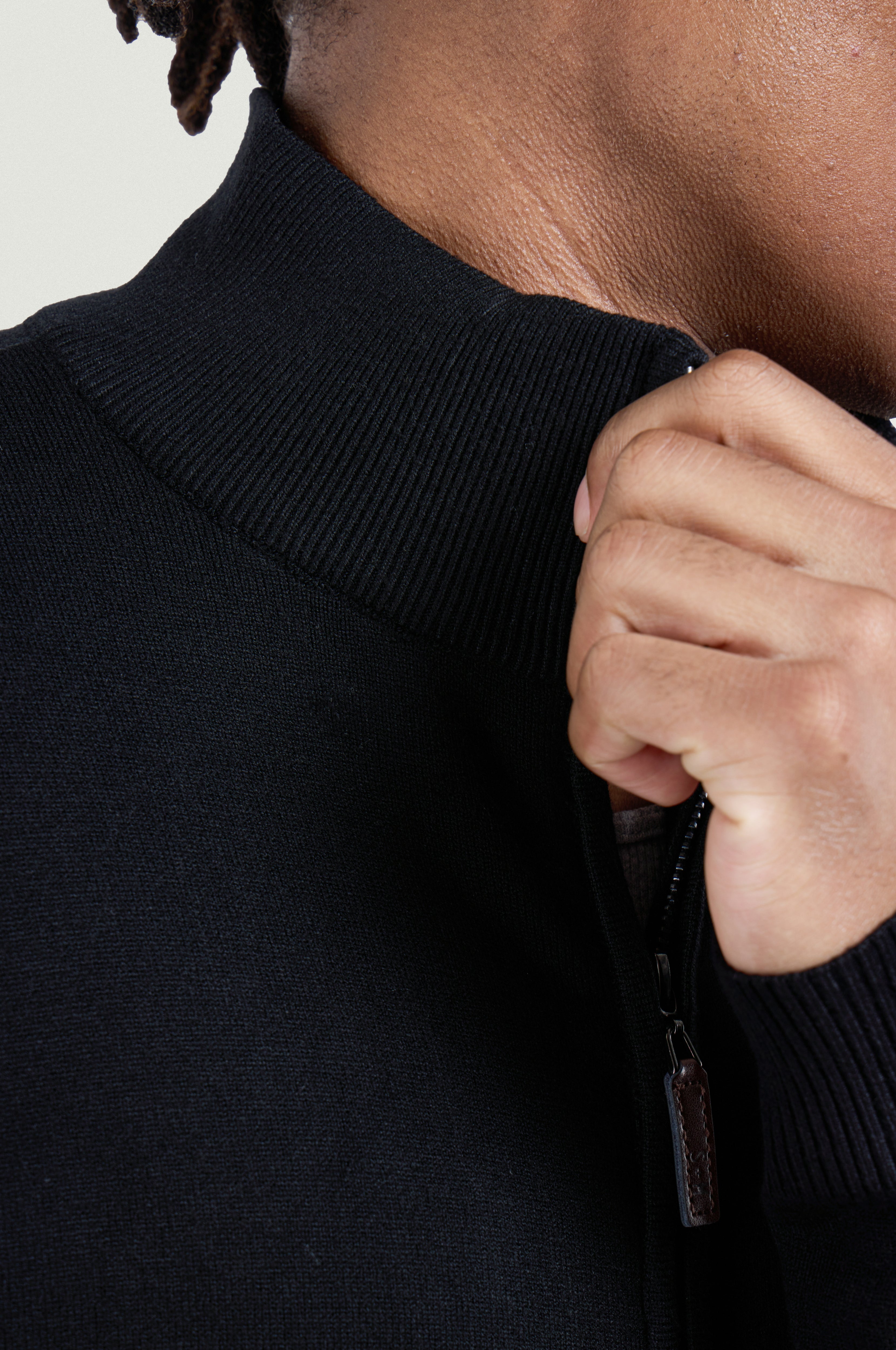 - FIT: Our Men's Sweater Jacket are Slim Fit, Ribbed Mock Neck, Cuffs And Waistline. Ultra Comfortable Soft Blend Of Fabrics Standard Length Rests A Bit Below Waist For Maximum Comfort. Elegant Stylish Look