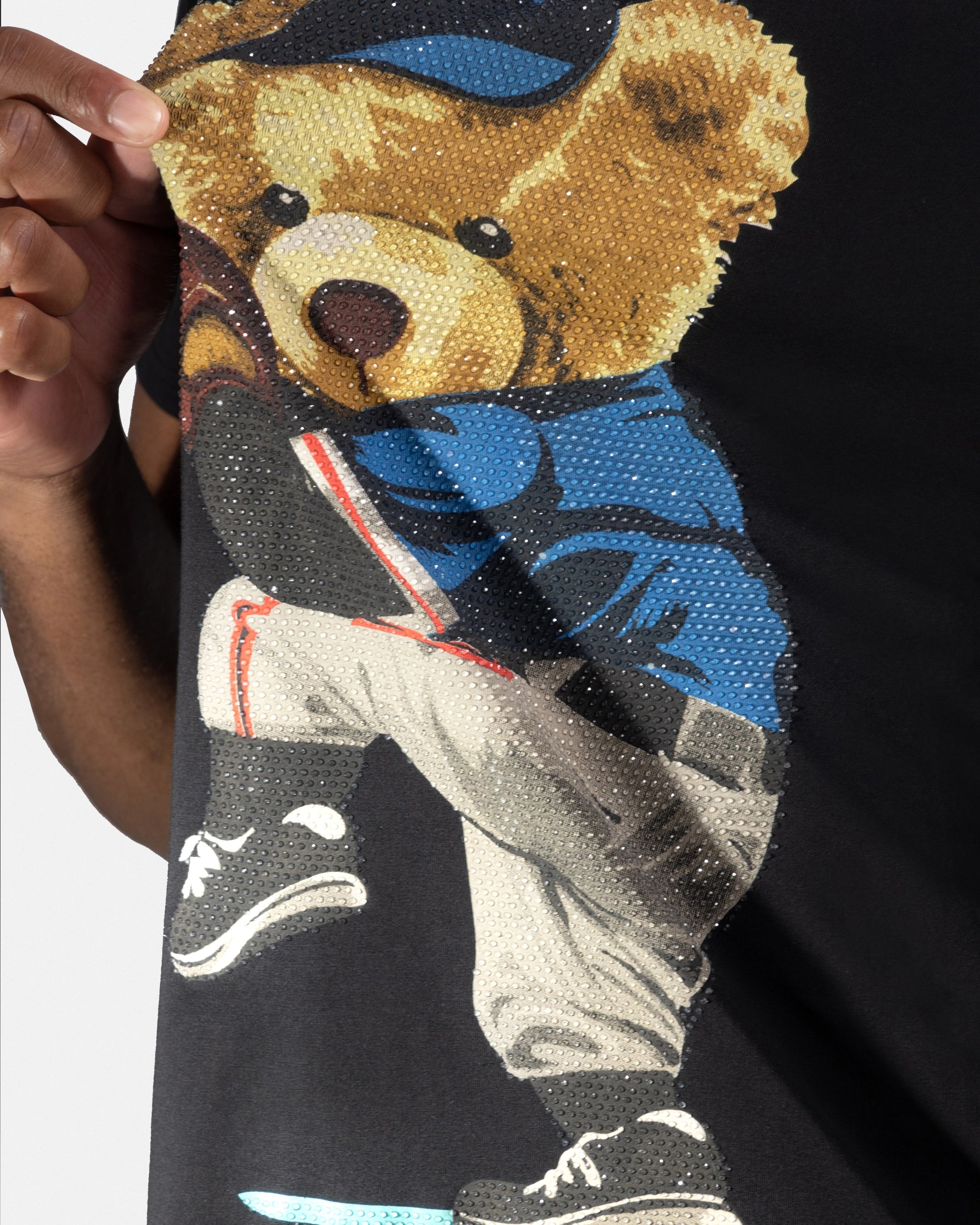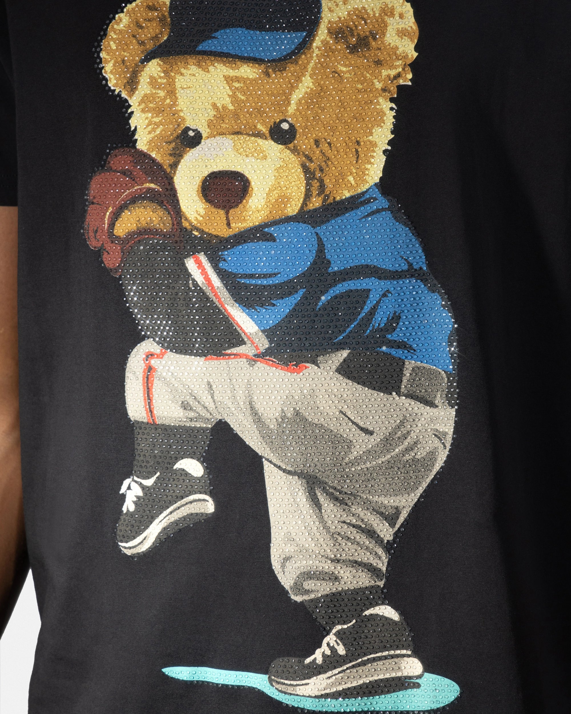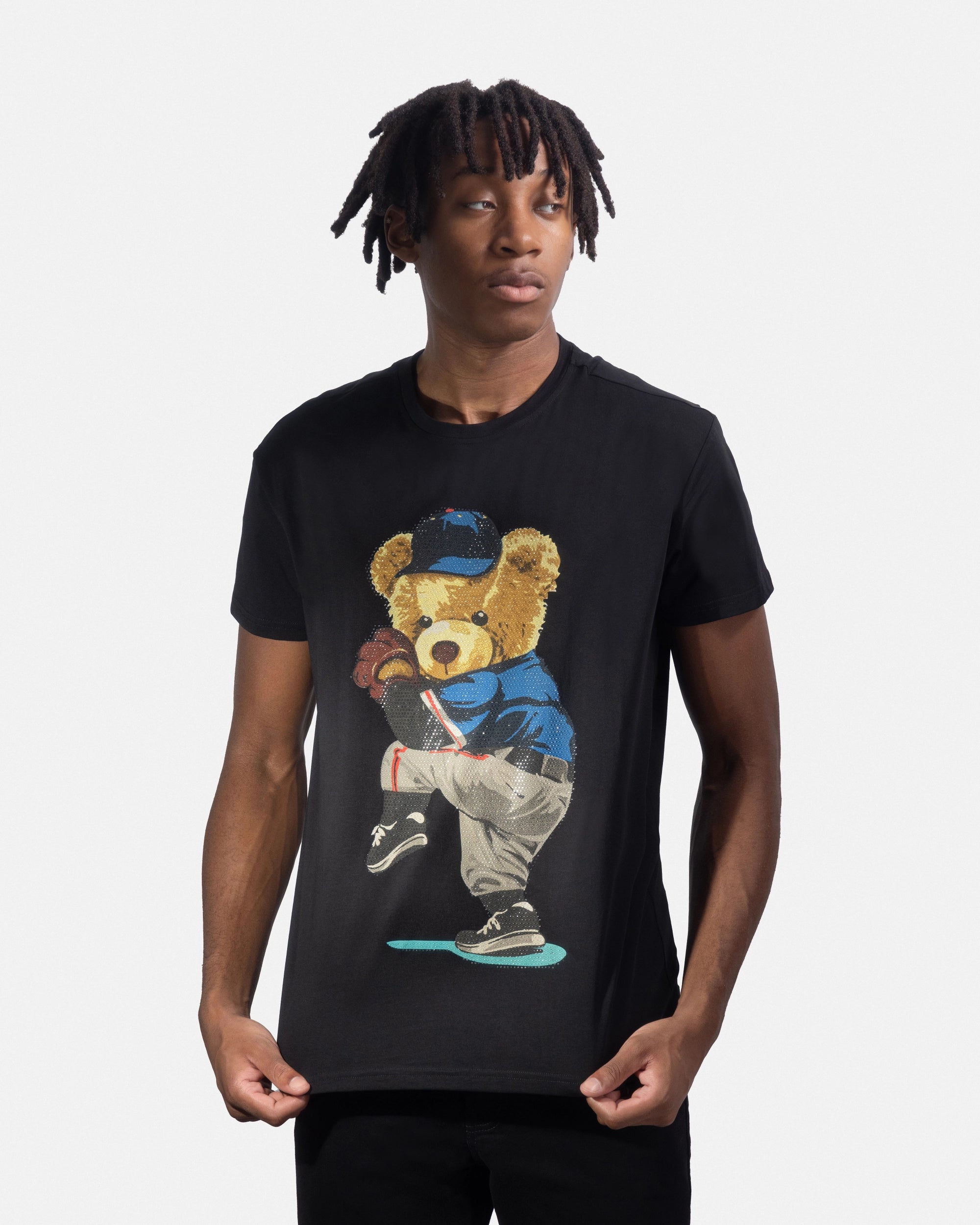 Heads or Tails Men's Slim Fit Crewneck Rhinestone Studded Graphic Printed T-Shirt Stone Tee Ballpark Bear