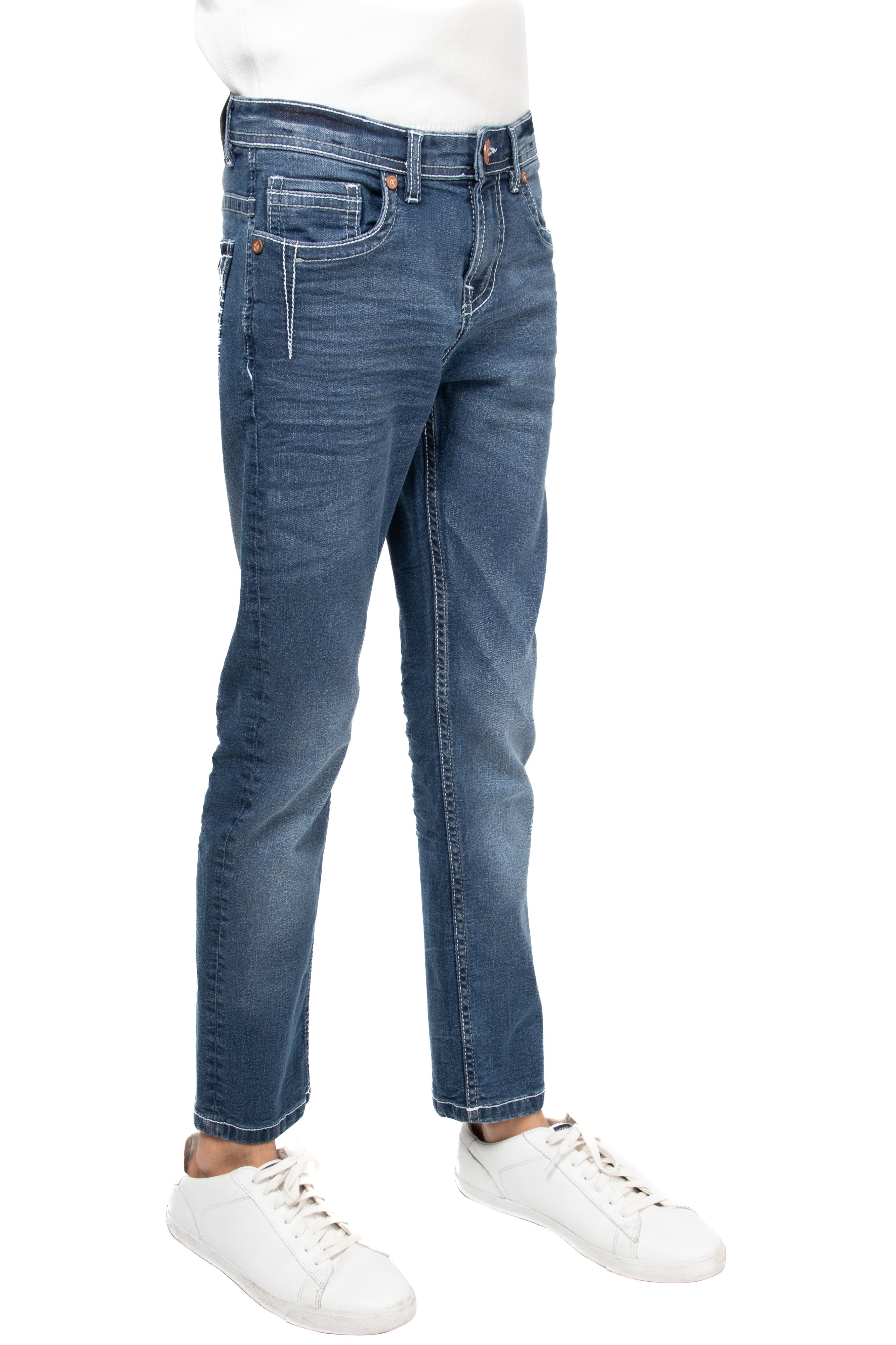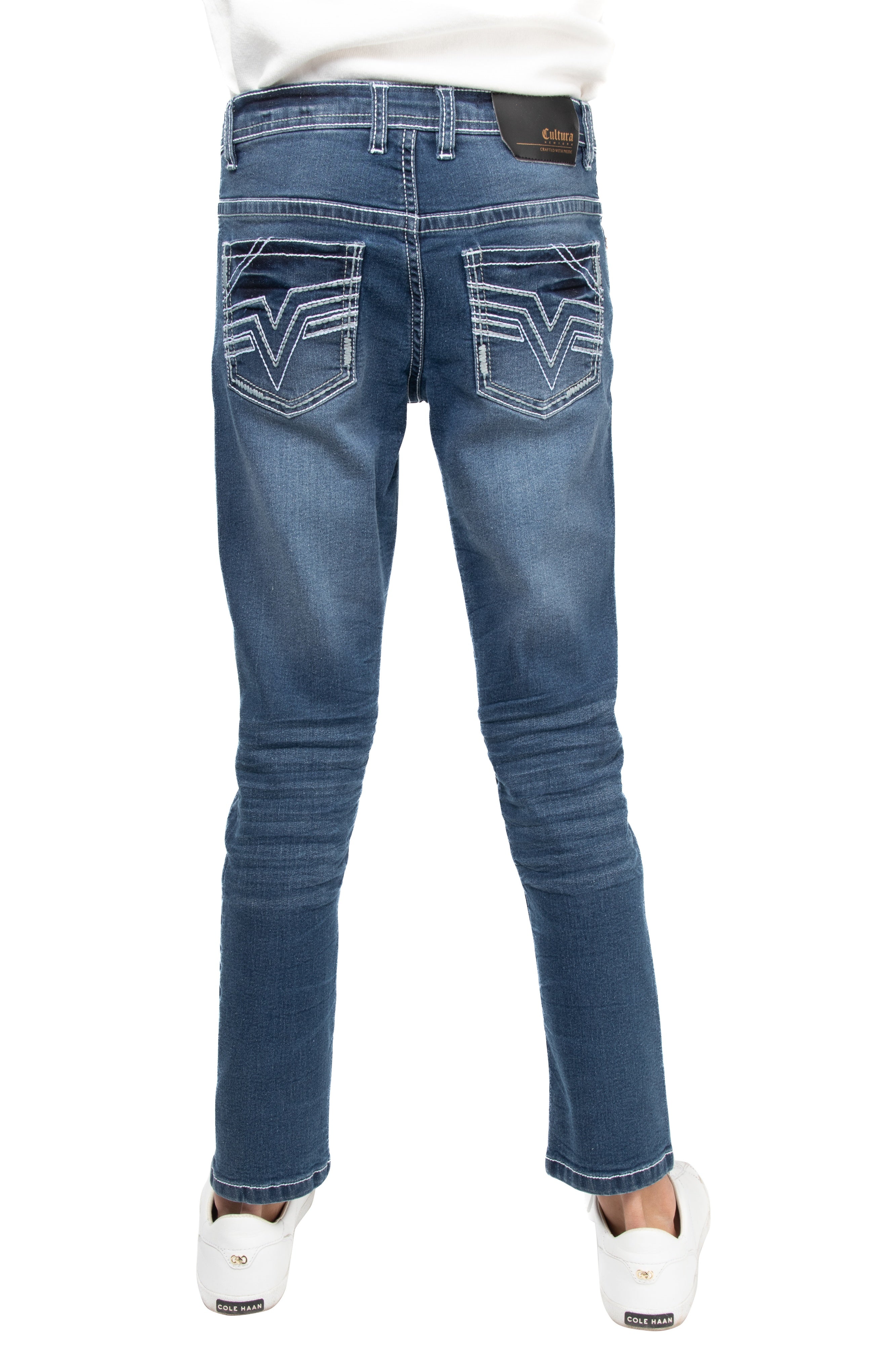 CULTURA Boy's Slim Fit Washed Saddle V stitch Denim Pants