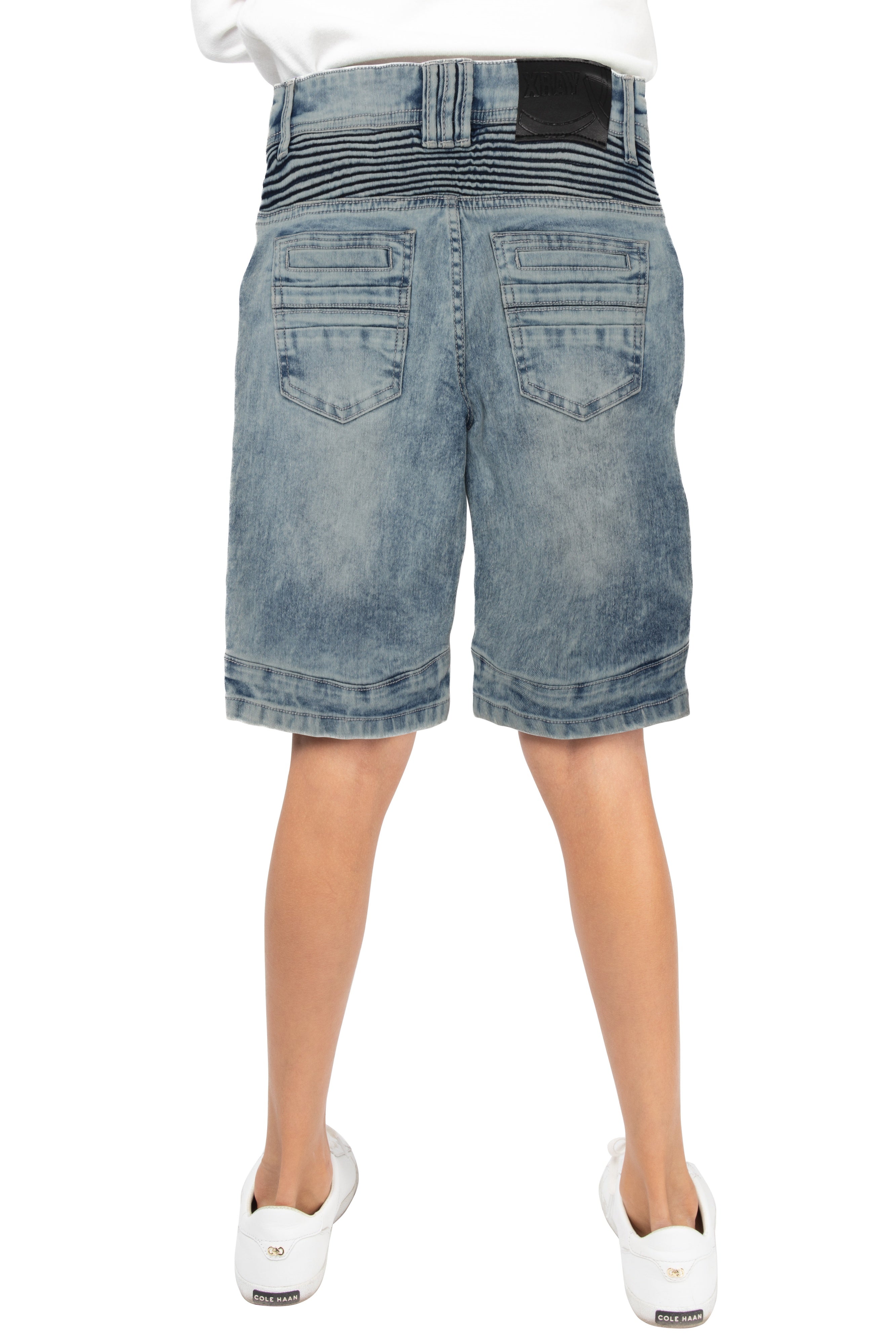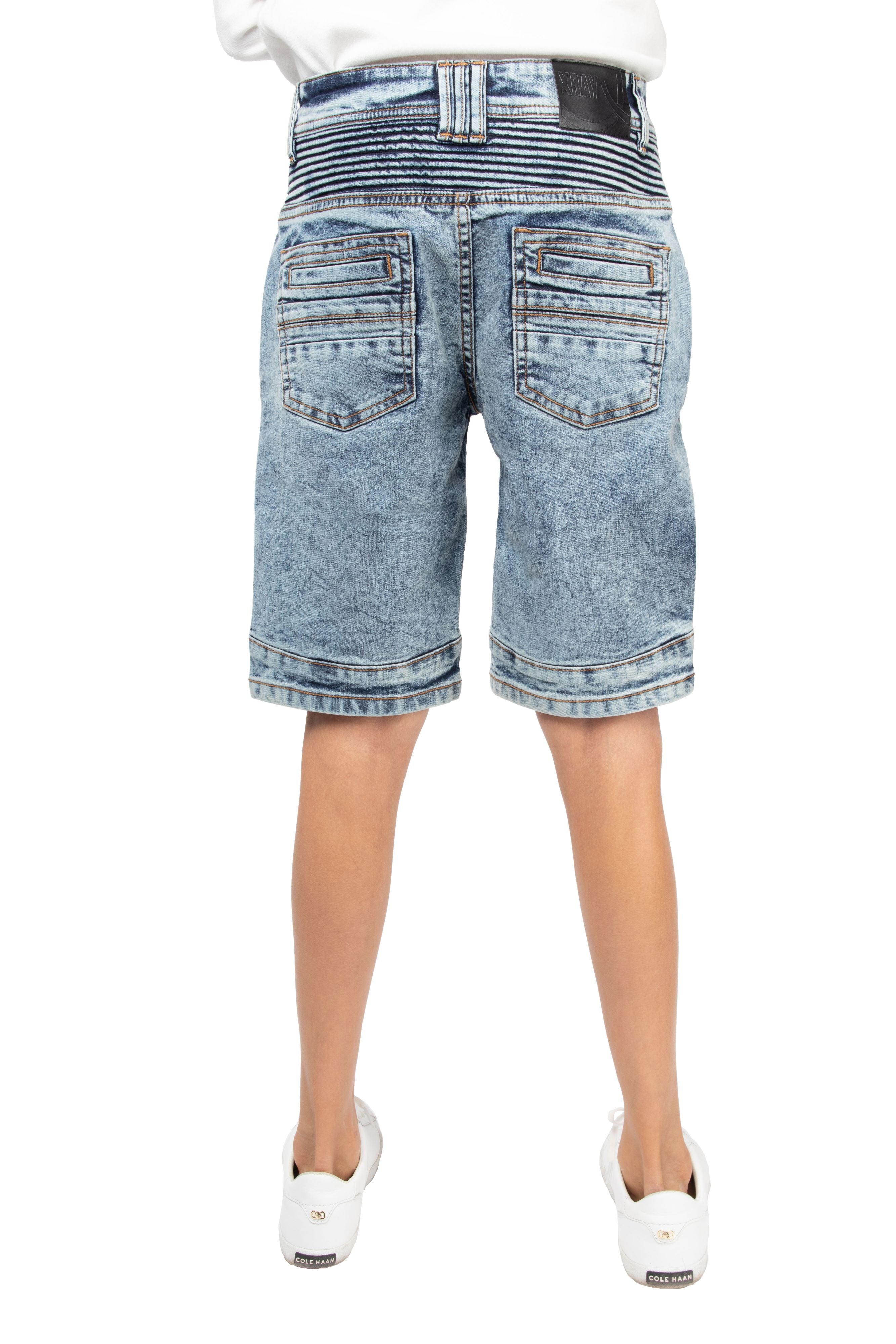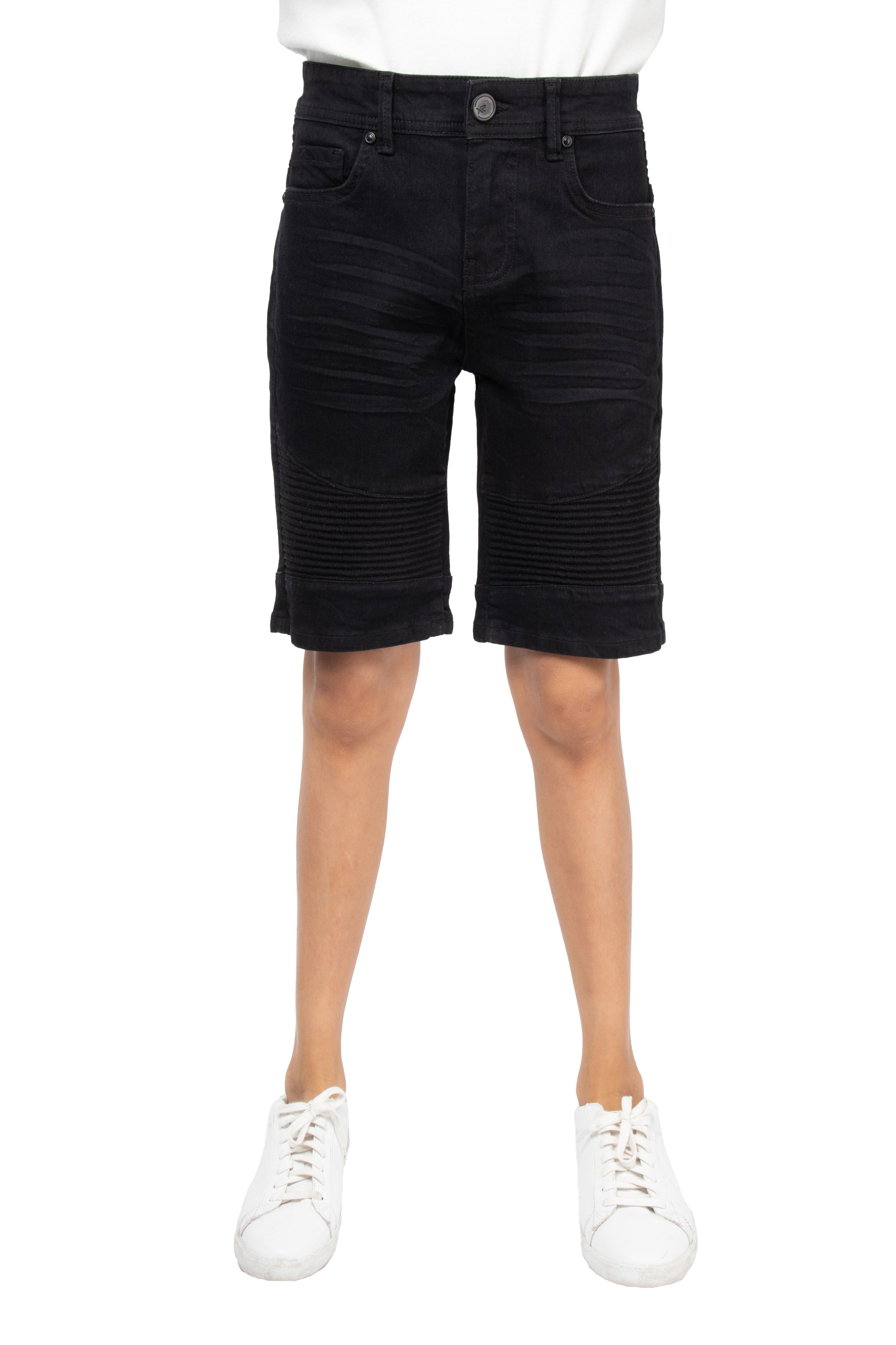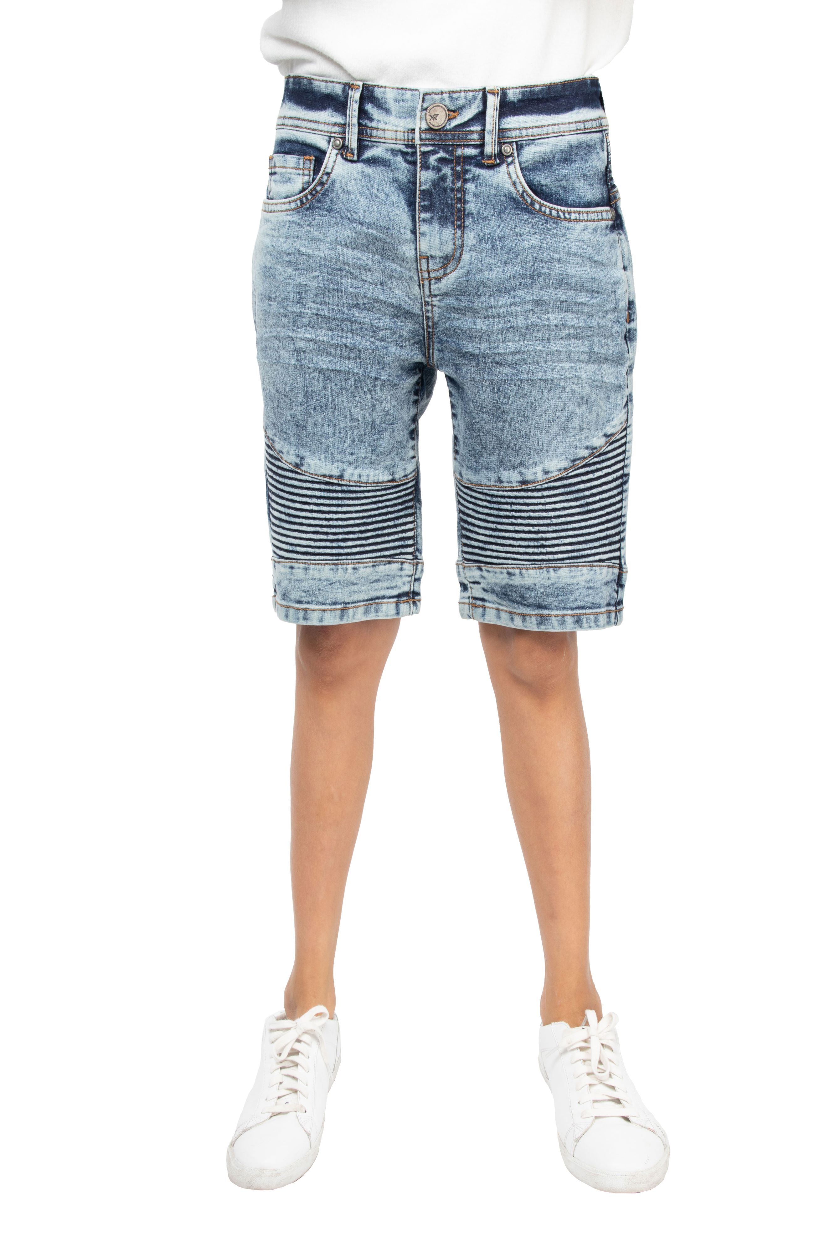 X RAY Boy's Slim Fit Washed Moto Biker Denim Shorts