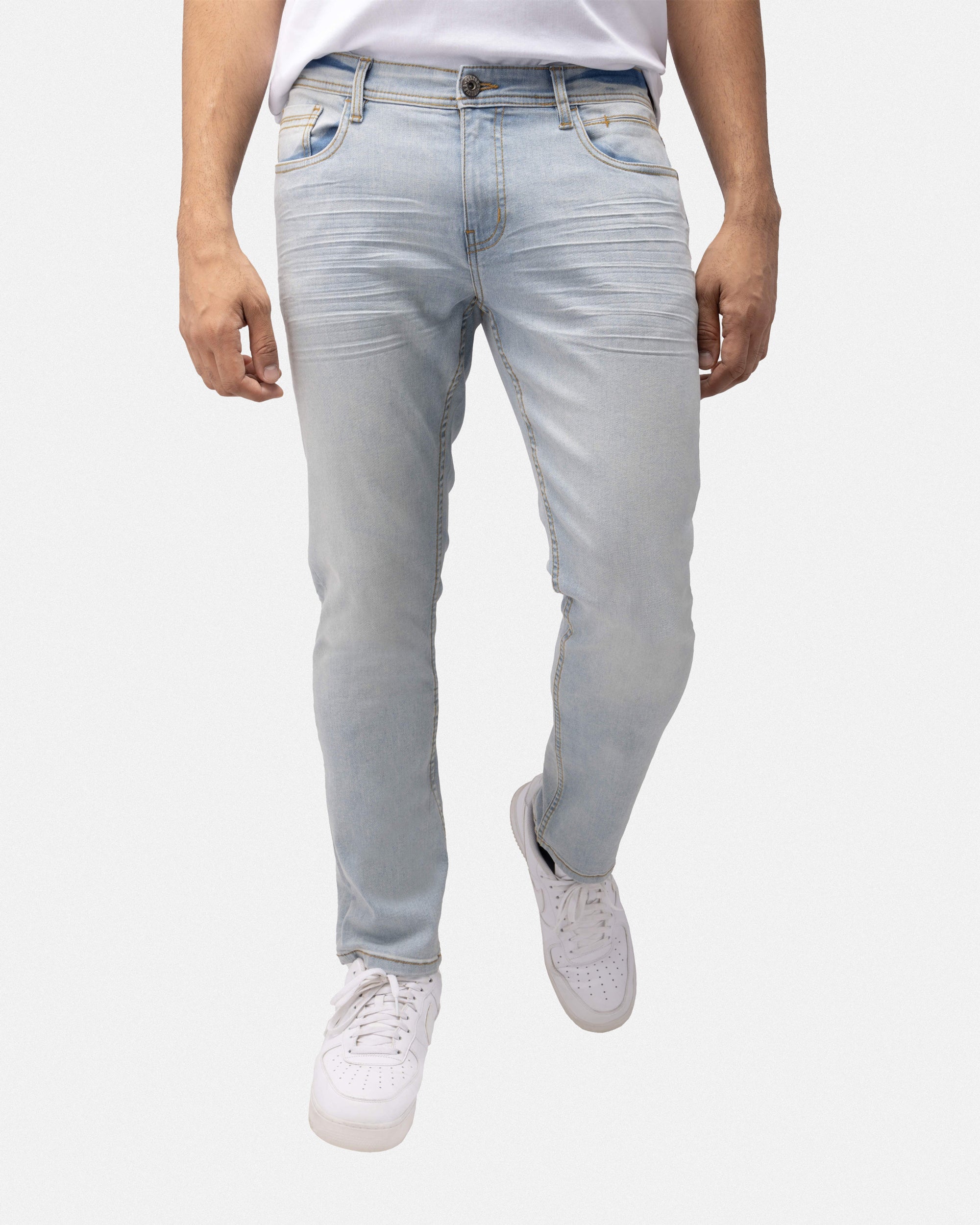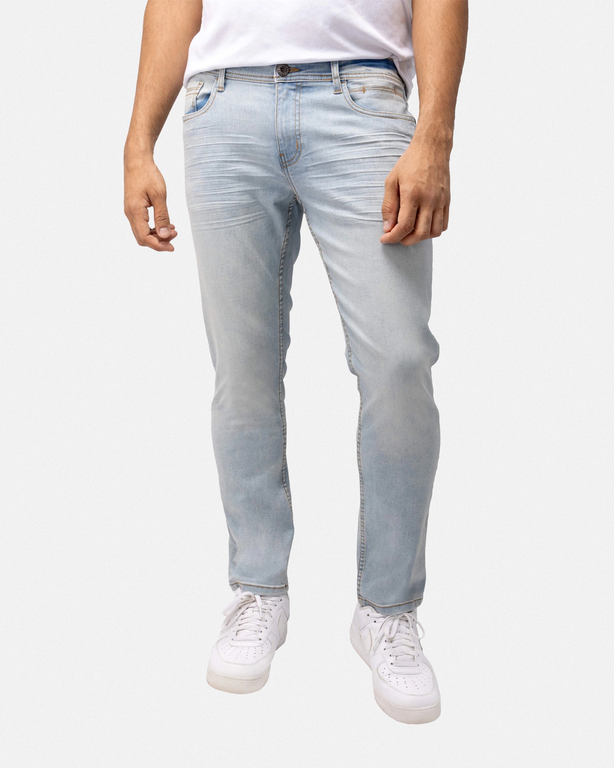 CULTURA AZURE Mens Basic Casual Stretch Washed Denim Jeans Flex Tapered Leg - Slim Fit