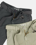 Boy's 2Pc Combo Belted Twill Cargo Shorts