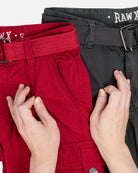 Introducing the RAW X Boy Boy's 2Pc Combo Belted Twill Cargo Shorts, the ultimate blend of comfort and style. Made of 100% cotton, these shorts feature a button and zip fly closure for a perfect fit. With multiple pockets and a stylish belt included, these twill cargo shorts are a must-have for any fashion-forward young man.