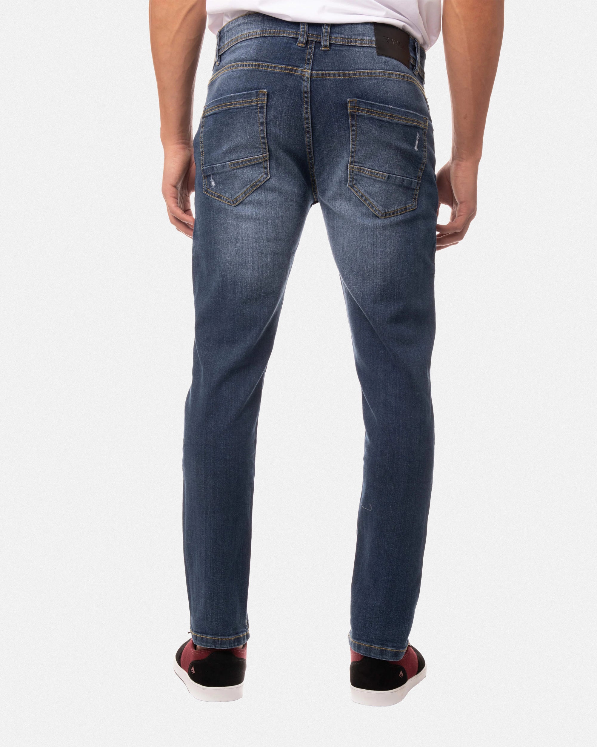 Raw X Men's Skinny Fit Stretch Contrast Neon Stitch Flex Jeans Fashion Destroyed Distressed Ripped Washed Denim Jean Pants