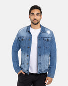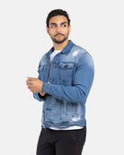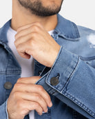 X RAY Men's Washed Trucker Rip Denim Jacket