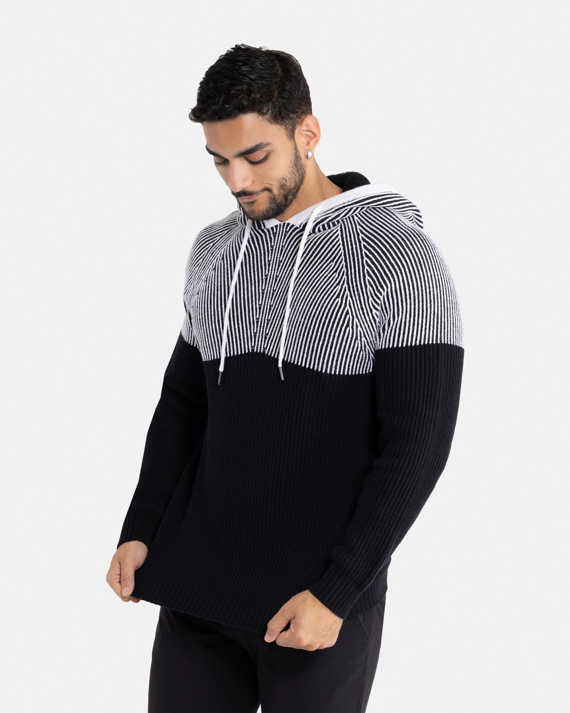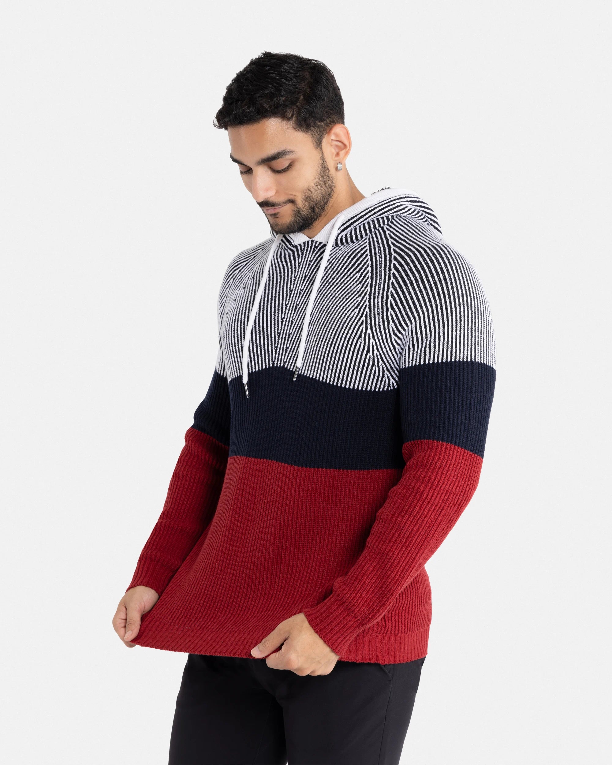 Stay warm and look good for any occasion with our colorful sweater collection for men. These hooded pullovers add a fashion-forward twist on the classic style, sporting longer waistlines and slim, physique-hugging profiles. Put those massive shoulders and lean, trim abs on display with our men's fitted sweaters. Dress to impress clients or keep it casual while running errands in these versatile and stylish sweaters.