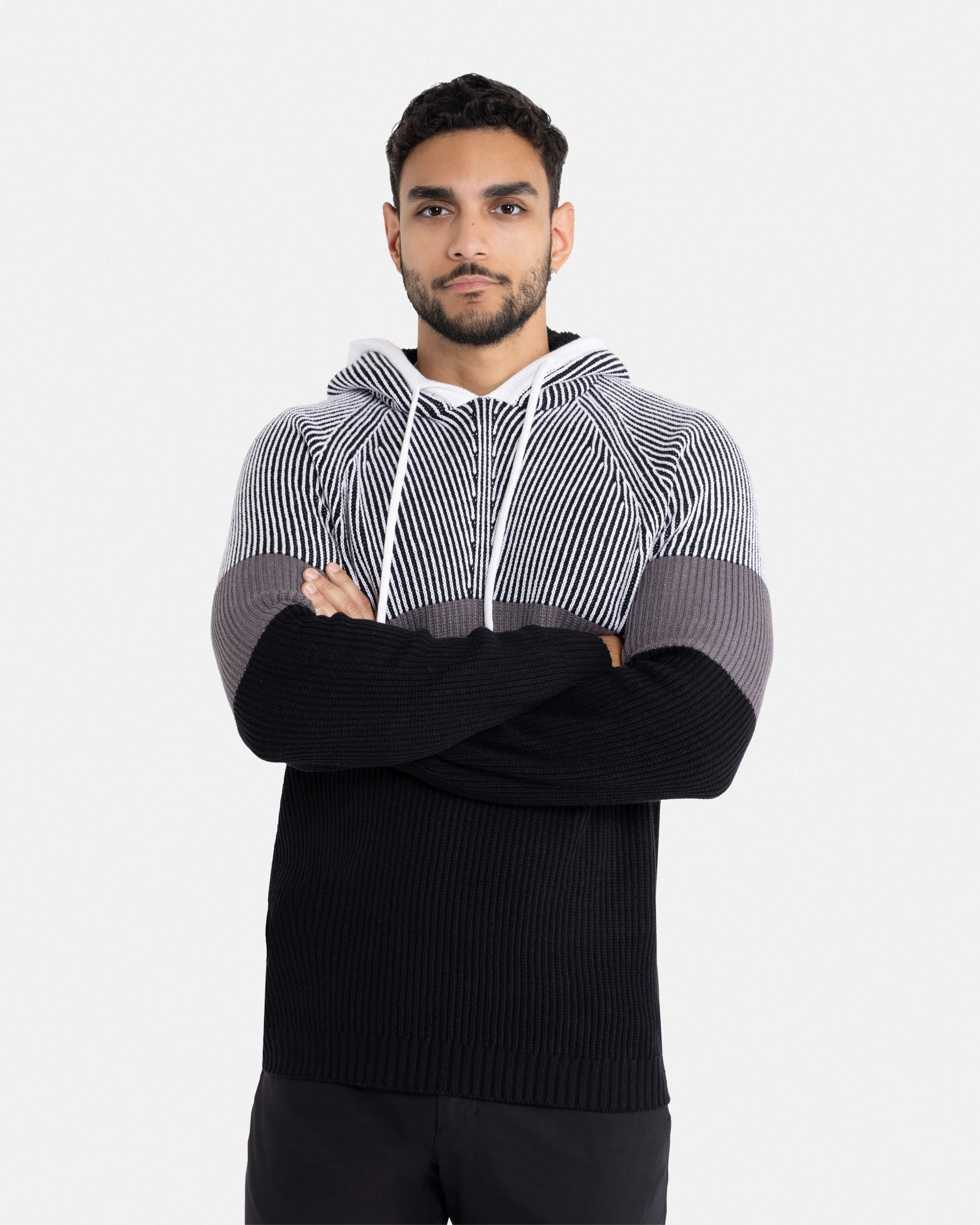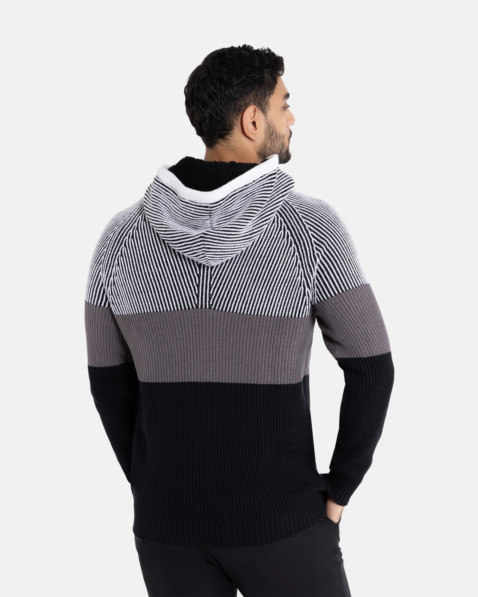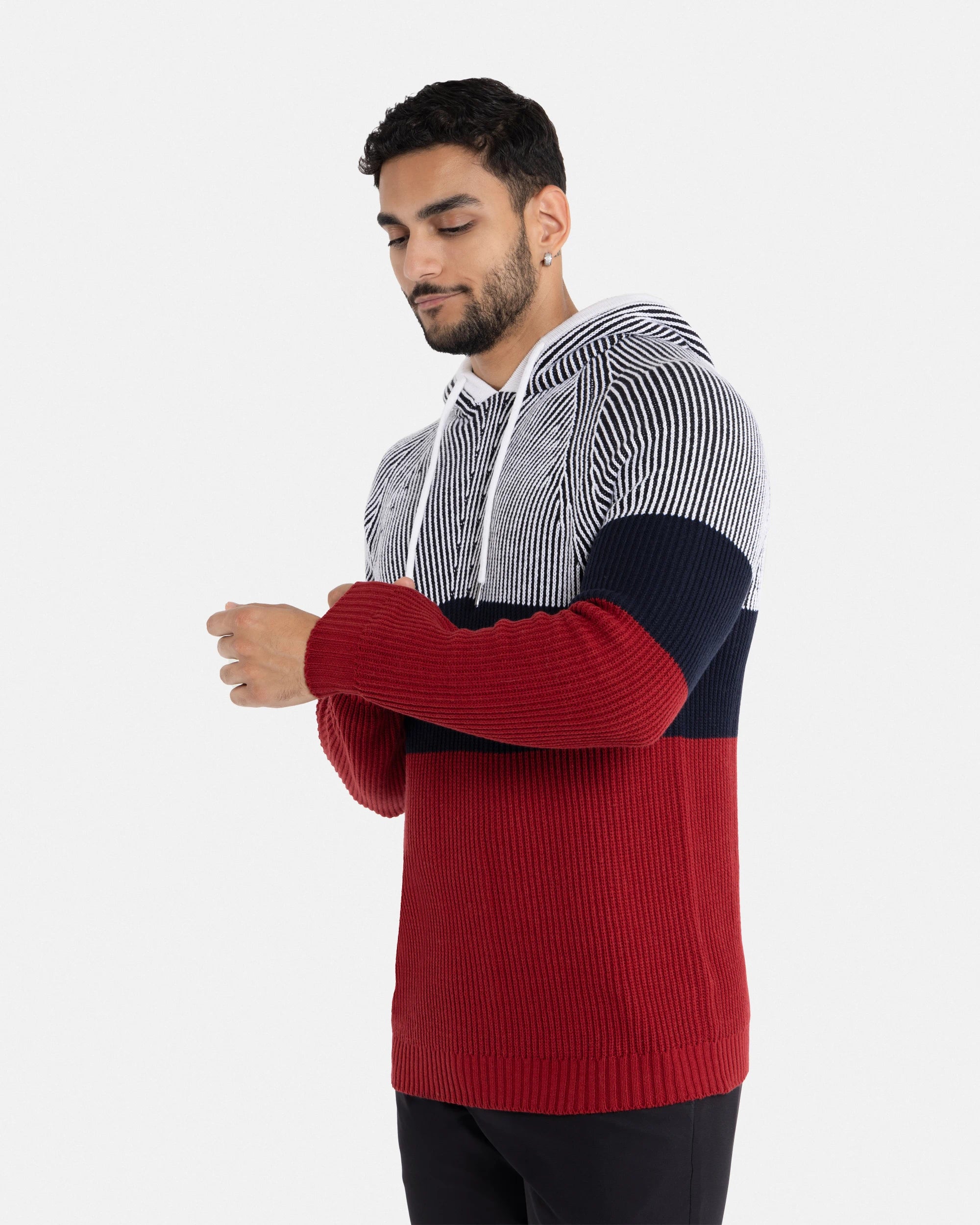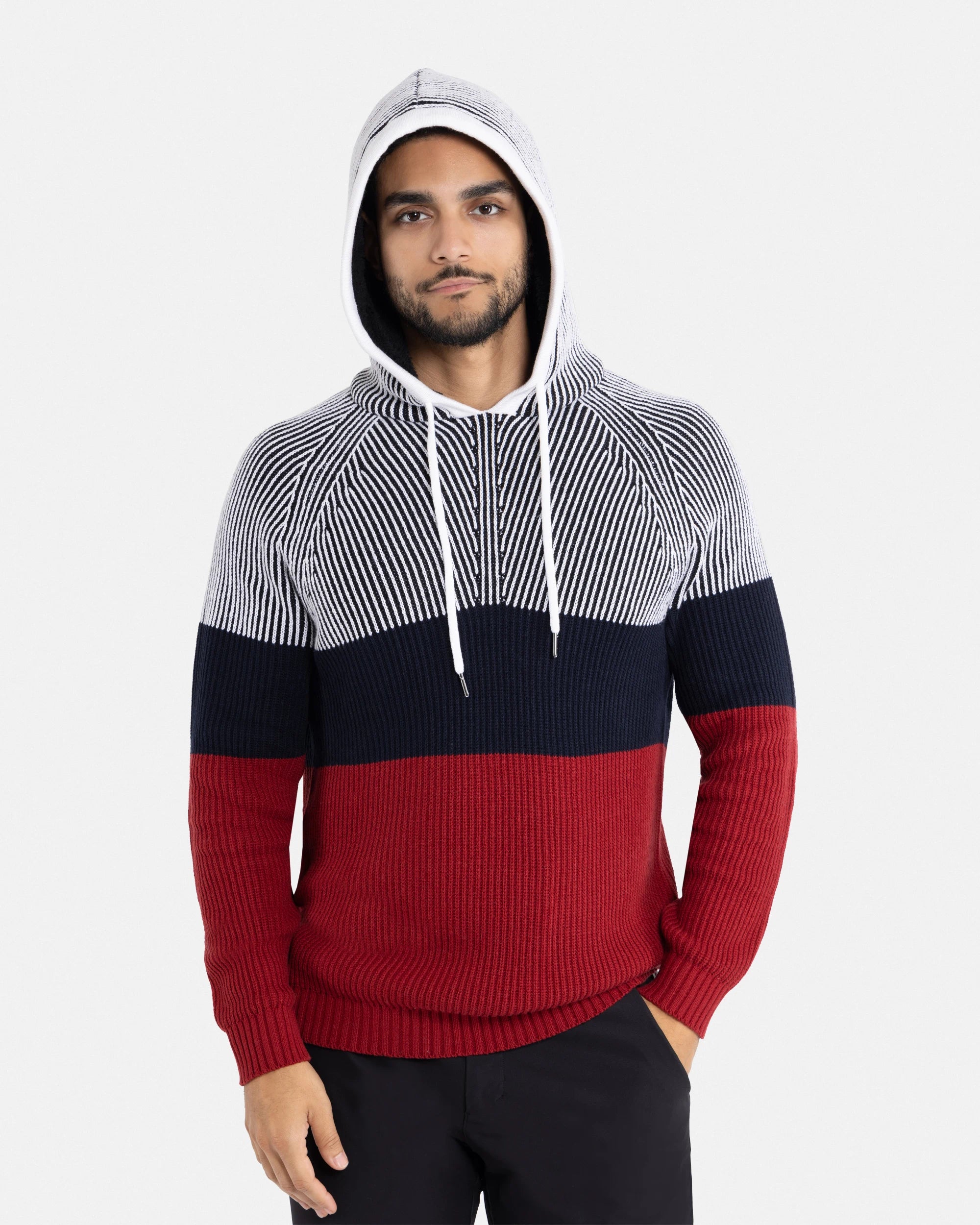 X RAY Men's Rib Knit Color Block Pullover Hooded Sweater